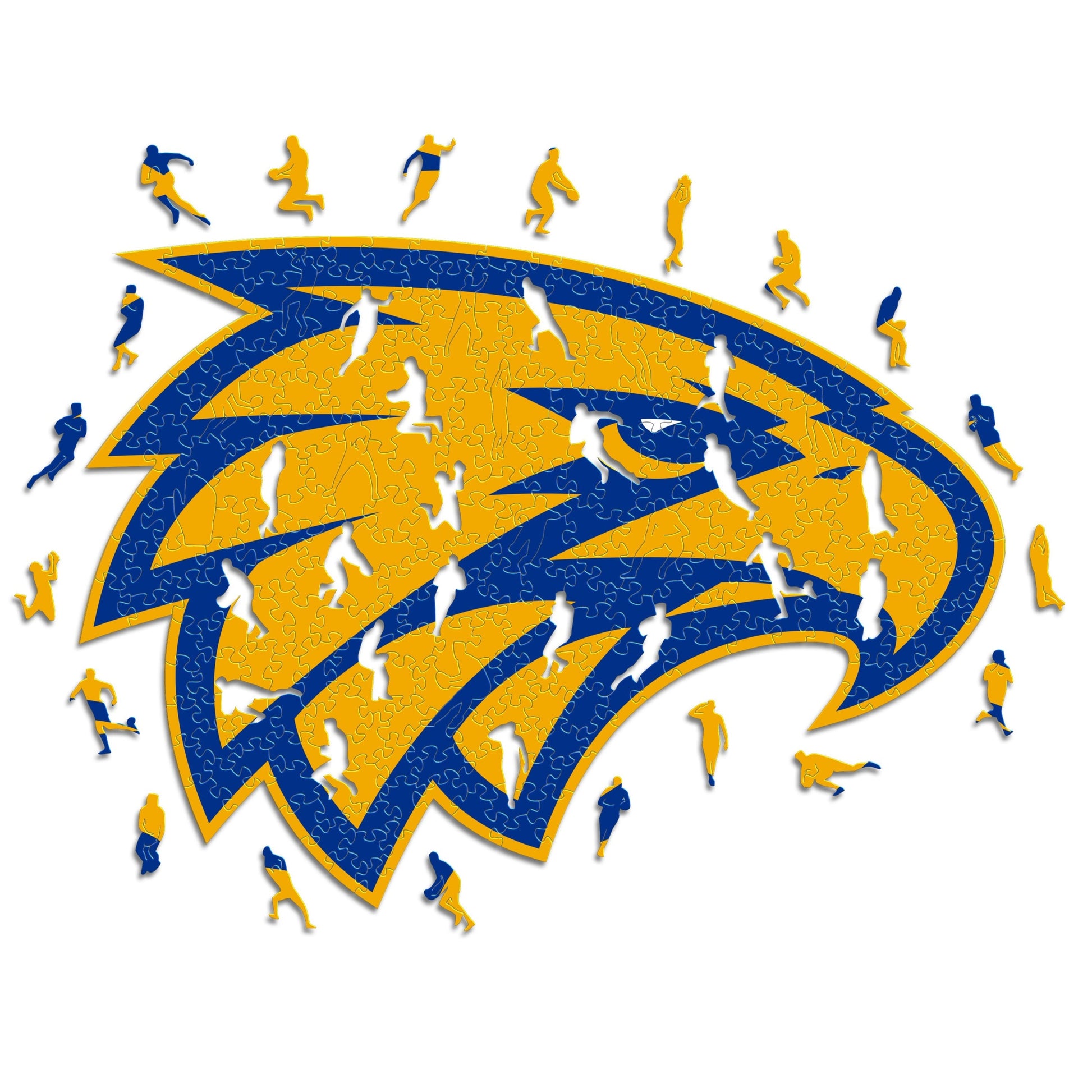✓ Each puzzle piece has a unique shape that depicts elements related to Australian football and iconic player poses.