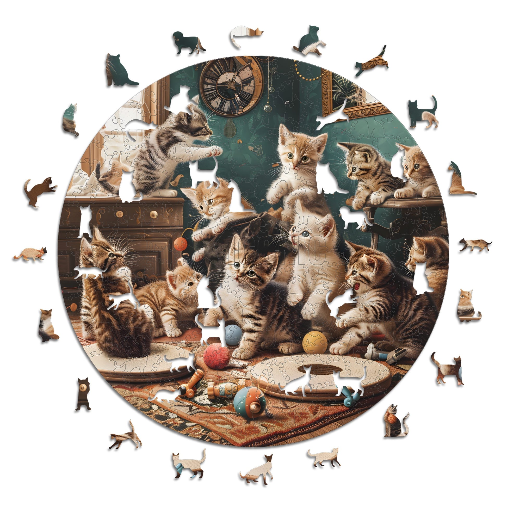 ✓ Each puzzle piece has a unique shape that depicts elements related to the artwork depicted.