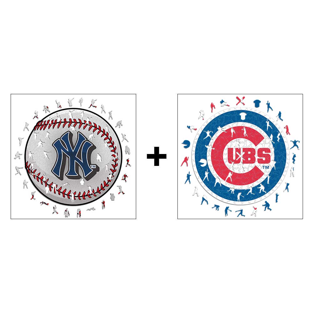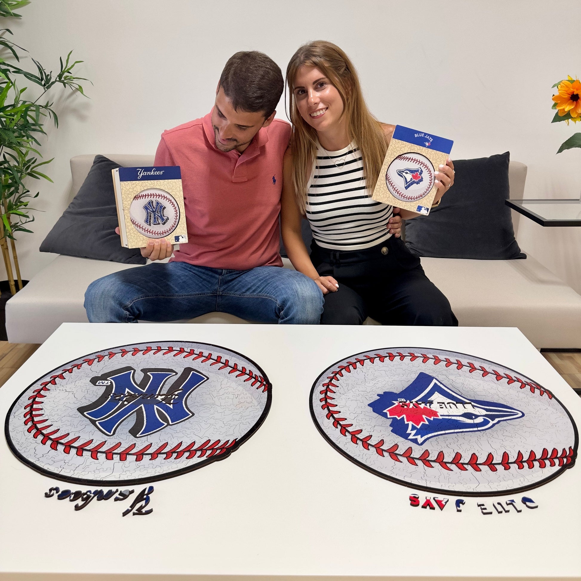 Each puzzle piece has a unique shape that depicts elements related to baseball and iconic player poses.