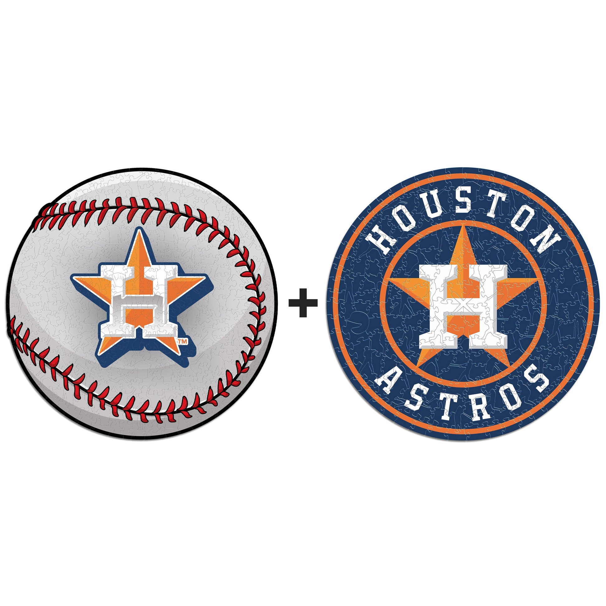 ✓ 2x (Houston Astros™ Ball + Primary Logo) Official Wooden Puzzles