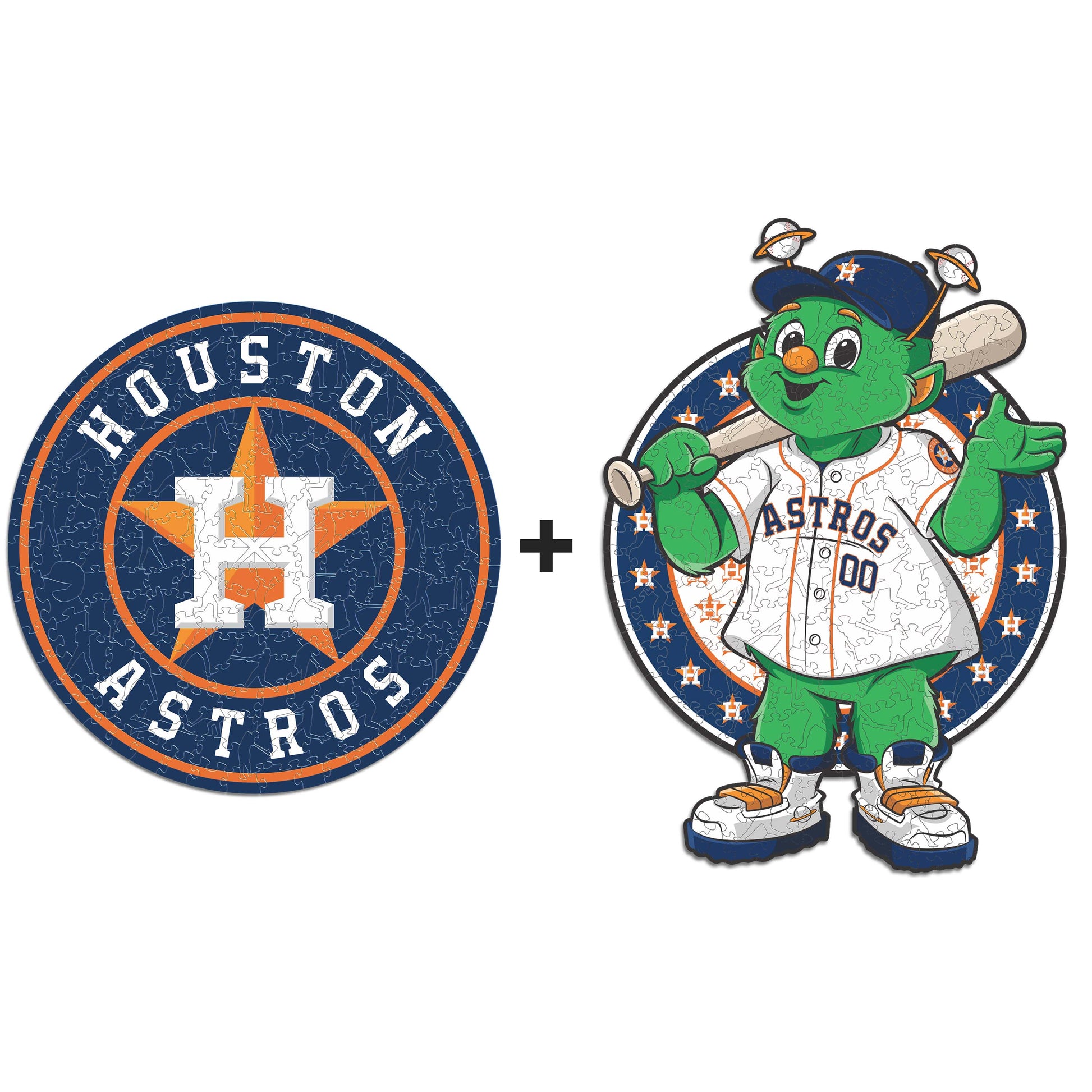 ✓ 2x (Houston Astros™ Primary Logo + Mascot) Official Wooden Puzzles