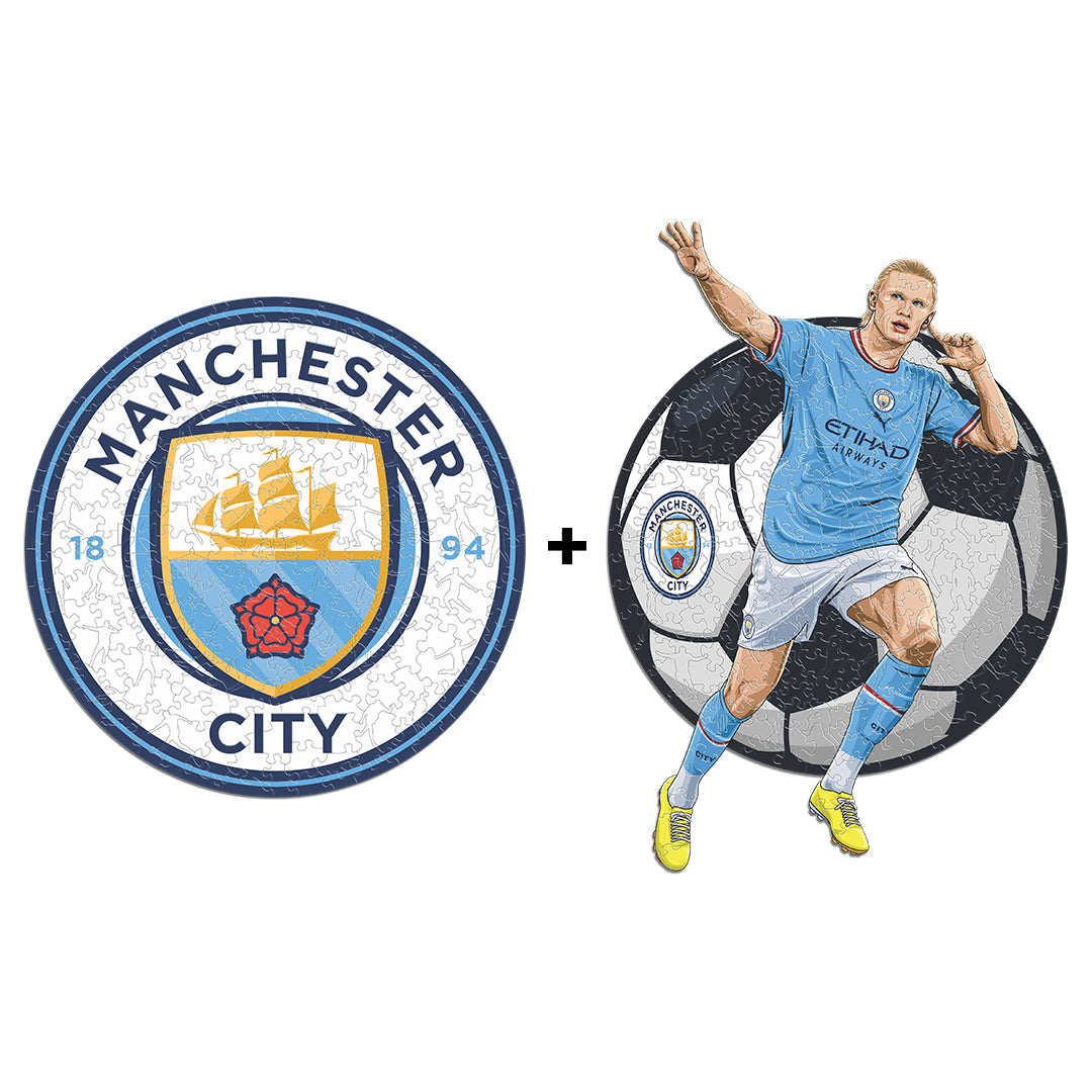 ✓ 2x (Manchester City FC® Logo + Erling Haaland) Official Wooden Puzzles