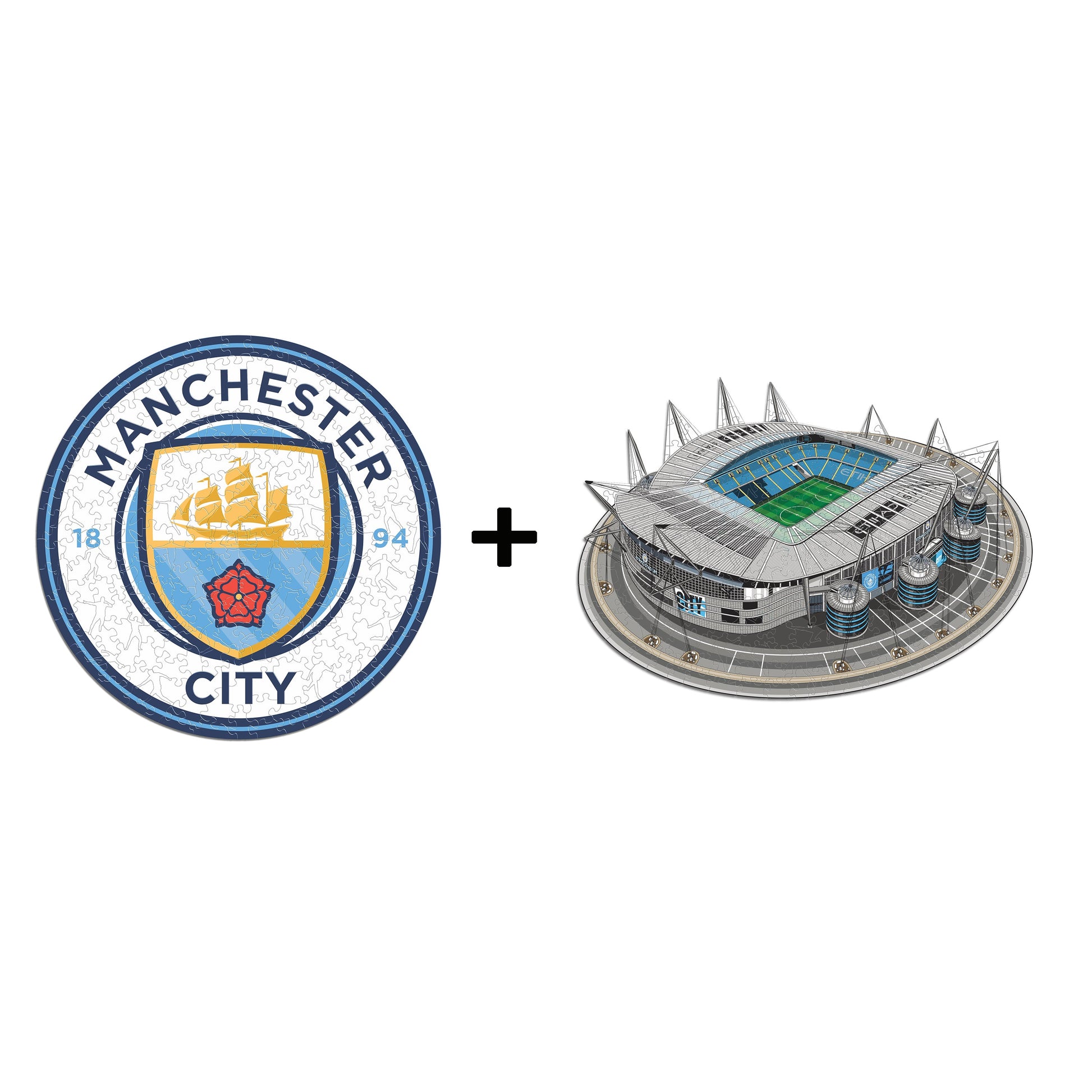 ✓ 2x (Manchester City FC® Logo + Etihad Stadium) Official Wooden Puzzles
