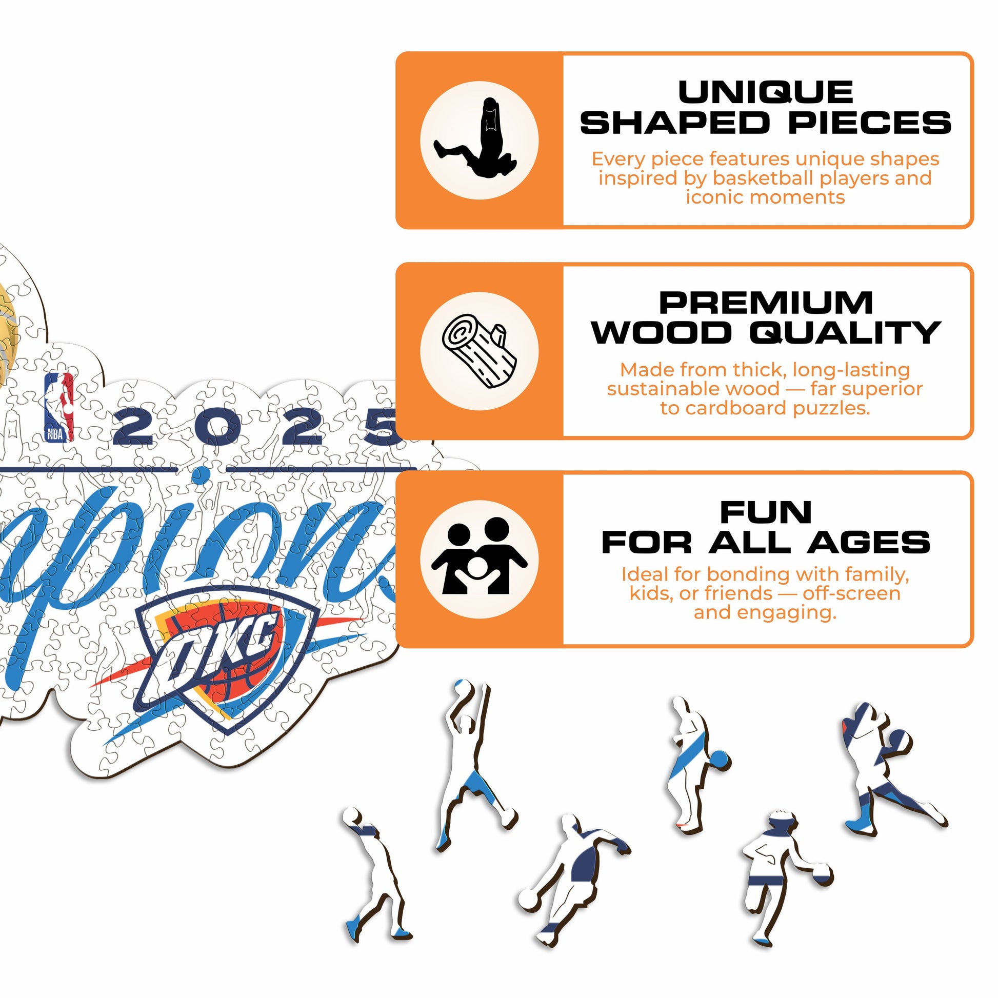 2x Oklahoma City Thunder™ 2025 NBA Champions + Logo - Official Wooden Puzzle