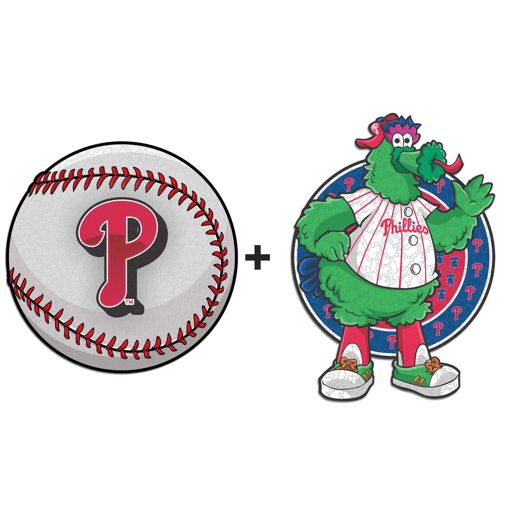 ✓ 2x (Philadelphia Phillies™ Ball + Mascot) Official Wooden Puzzles