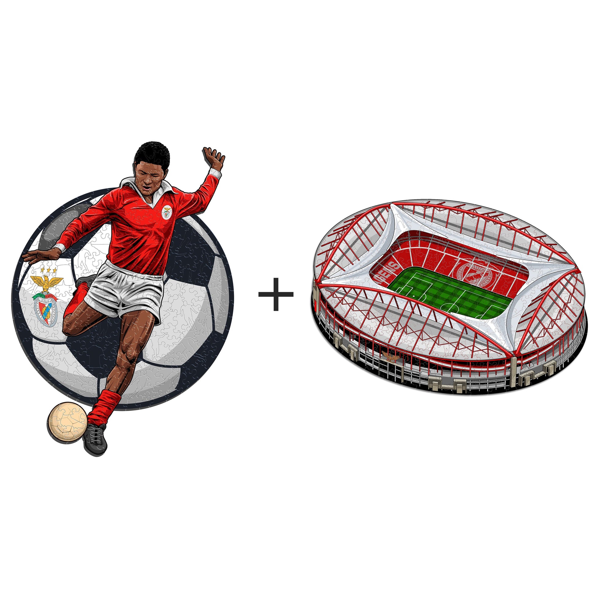 2x (SL Benfica® Eusebio + Estadio) Official Wooden Puzzle