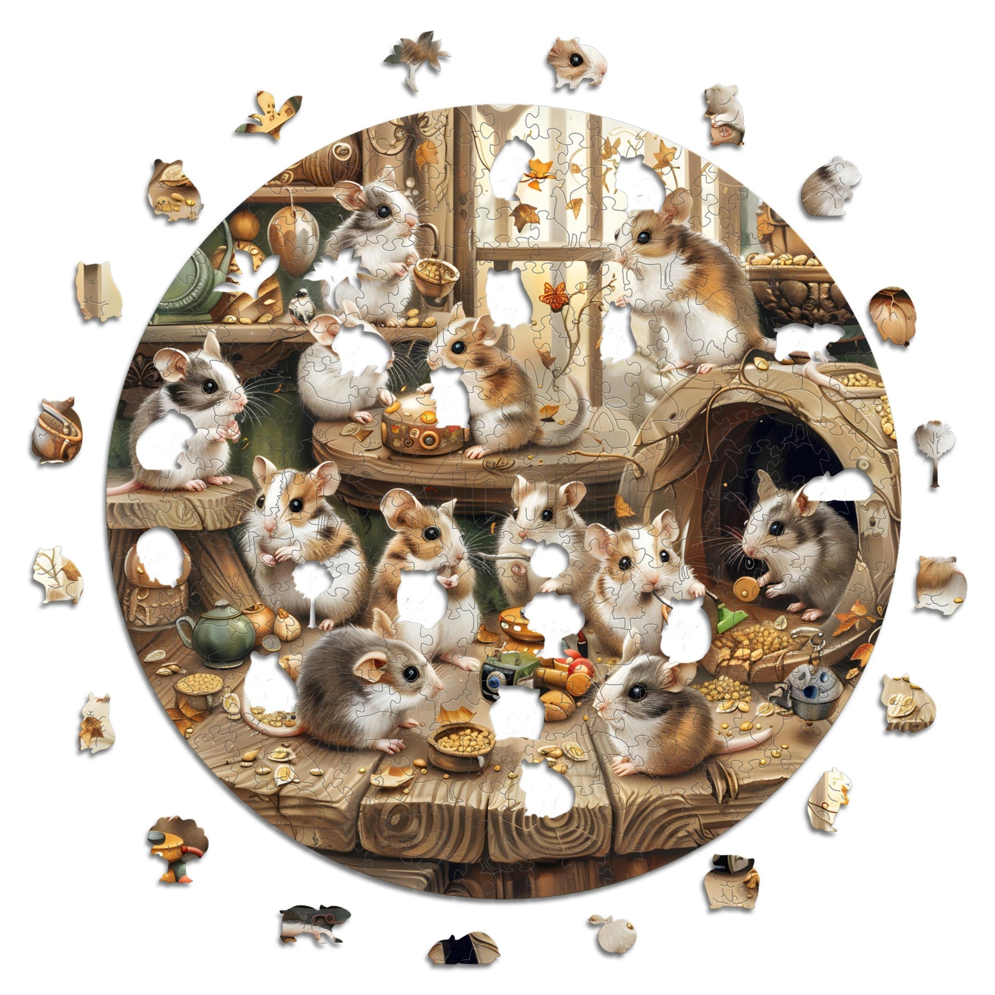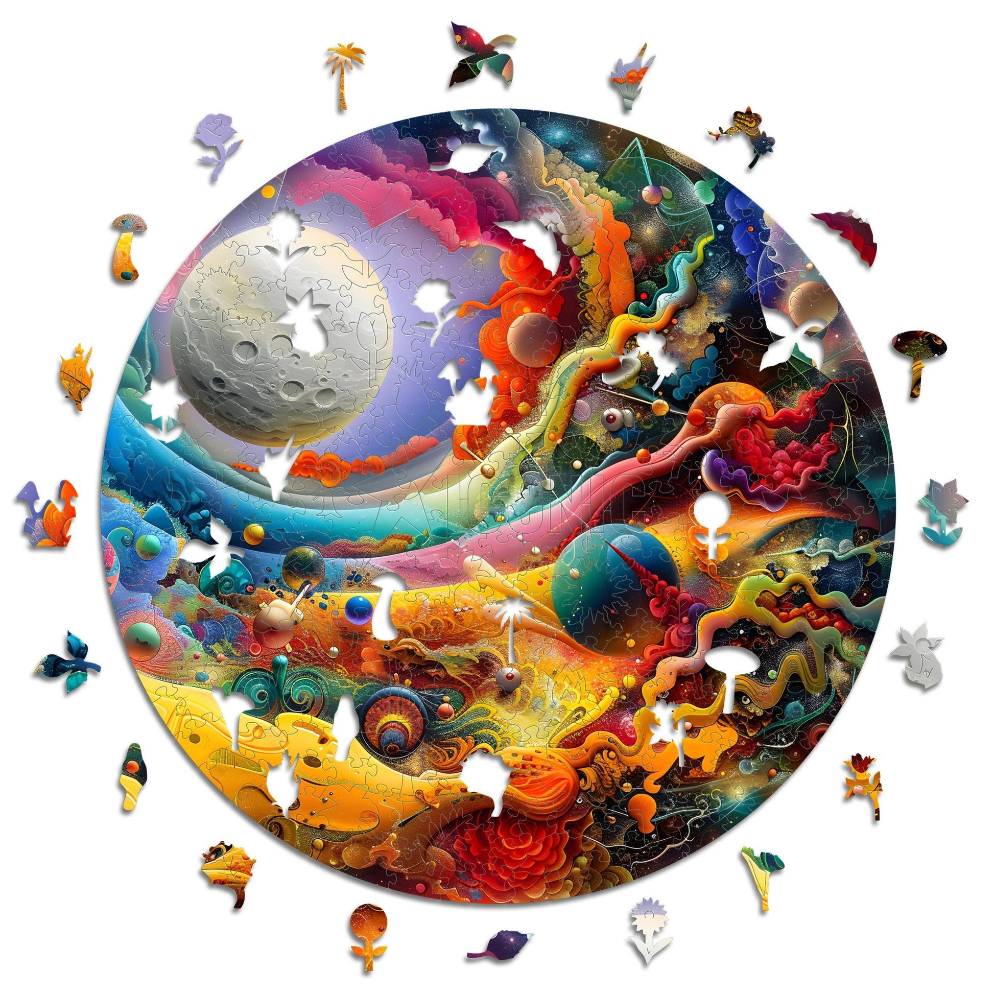 ✓ Each puzzle piece has a unique shape that depicts elements related to the artwork depicted.