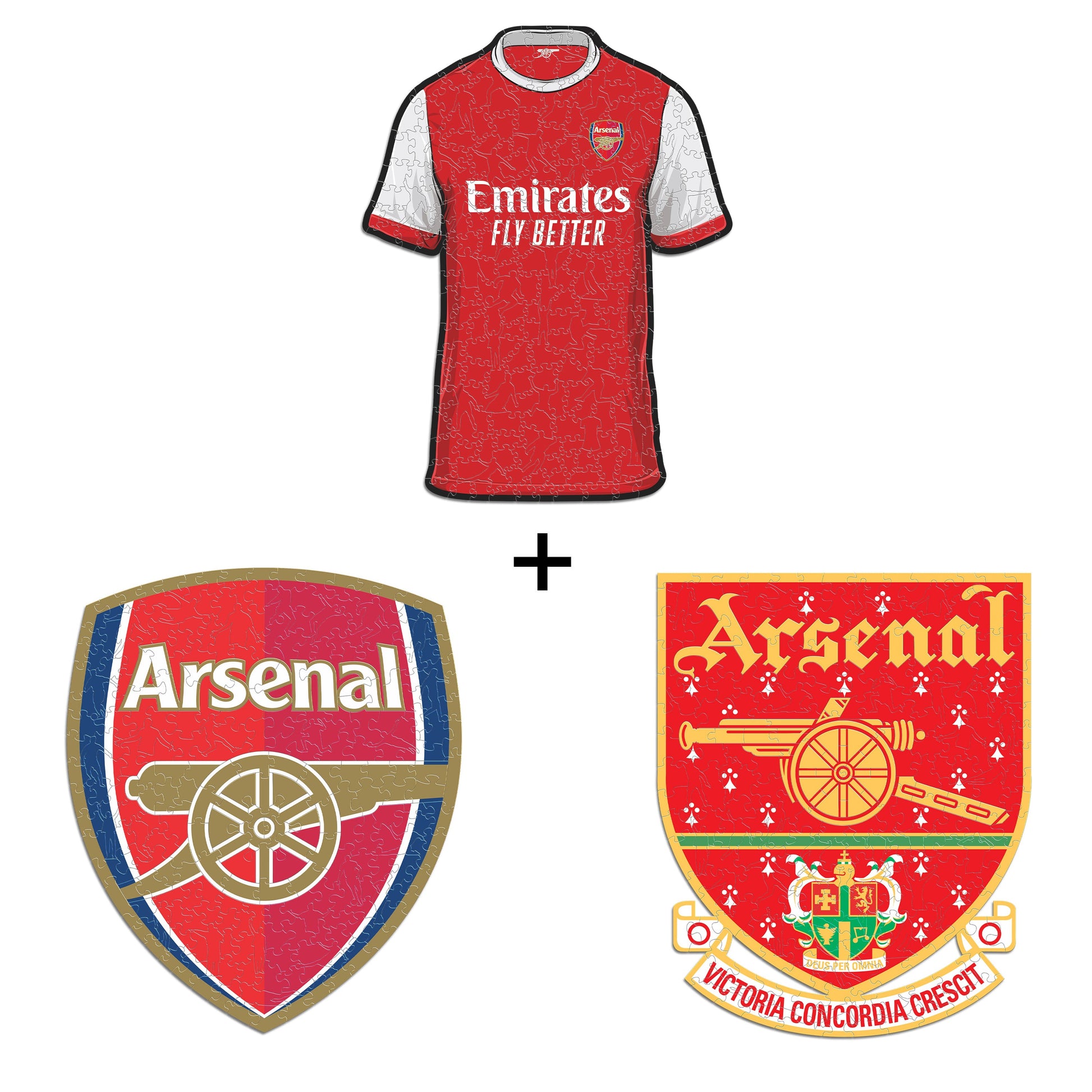 ✓ 3x (Arsenal FC® Logo + Retro Logo + Jersey) Official Wooden Puzzles