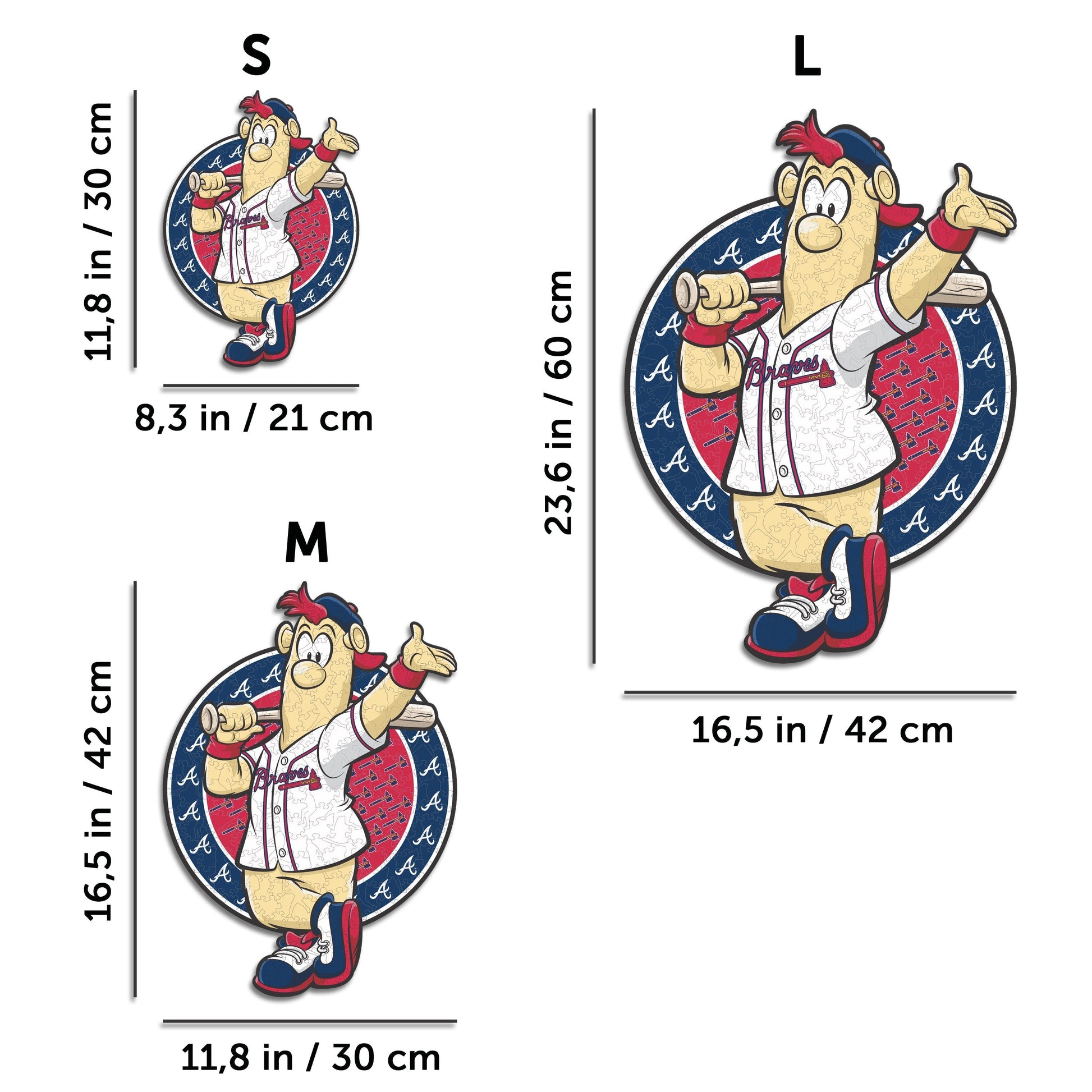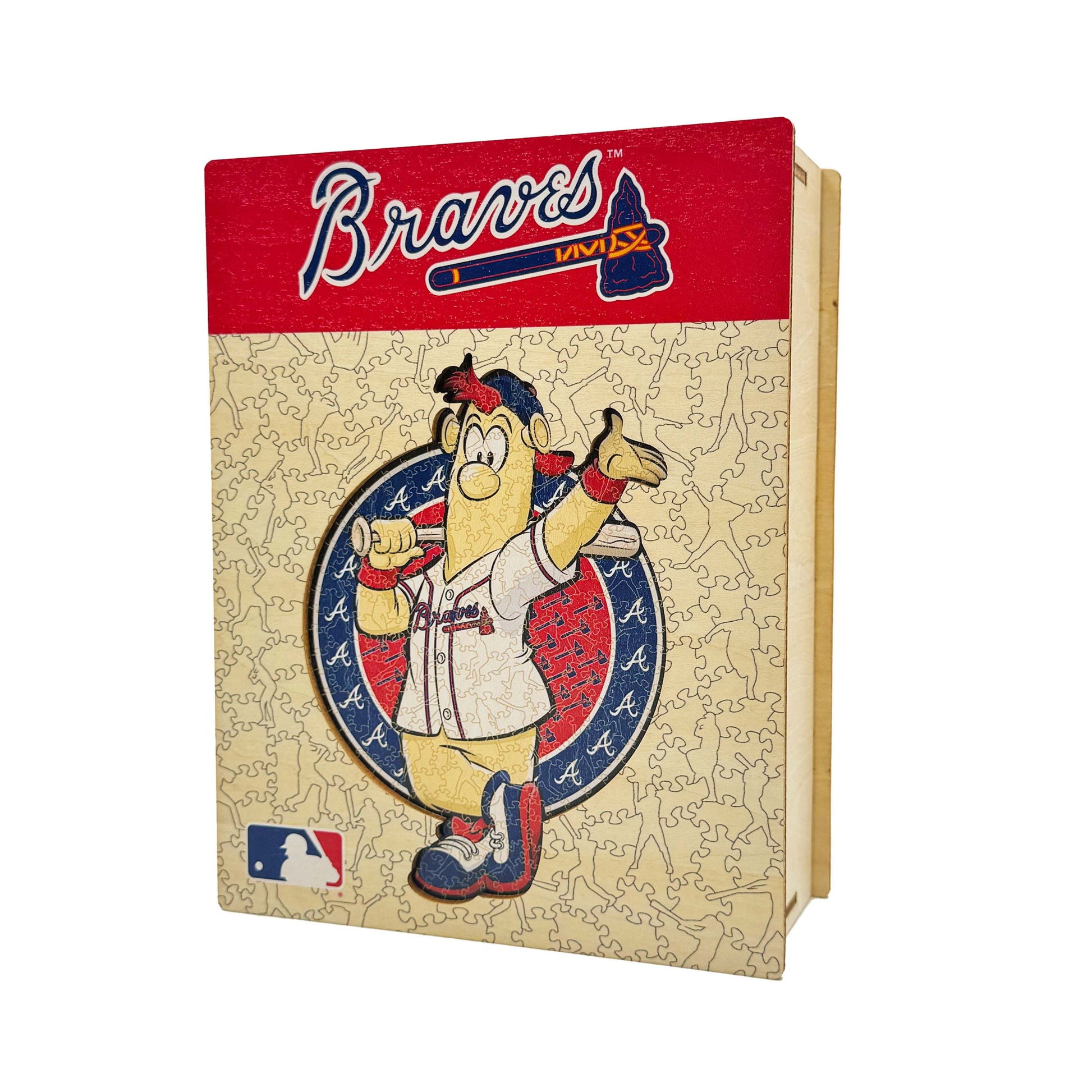 ✓ 3x Atlanta Braves™ (Ball + Double Tomahawk Logo + Mascot) Wooden Puzzle