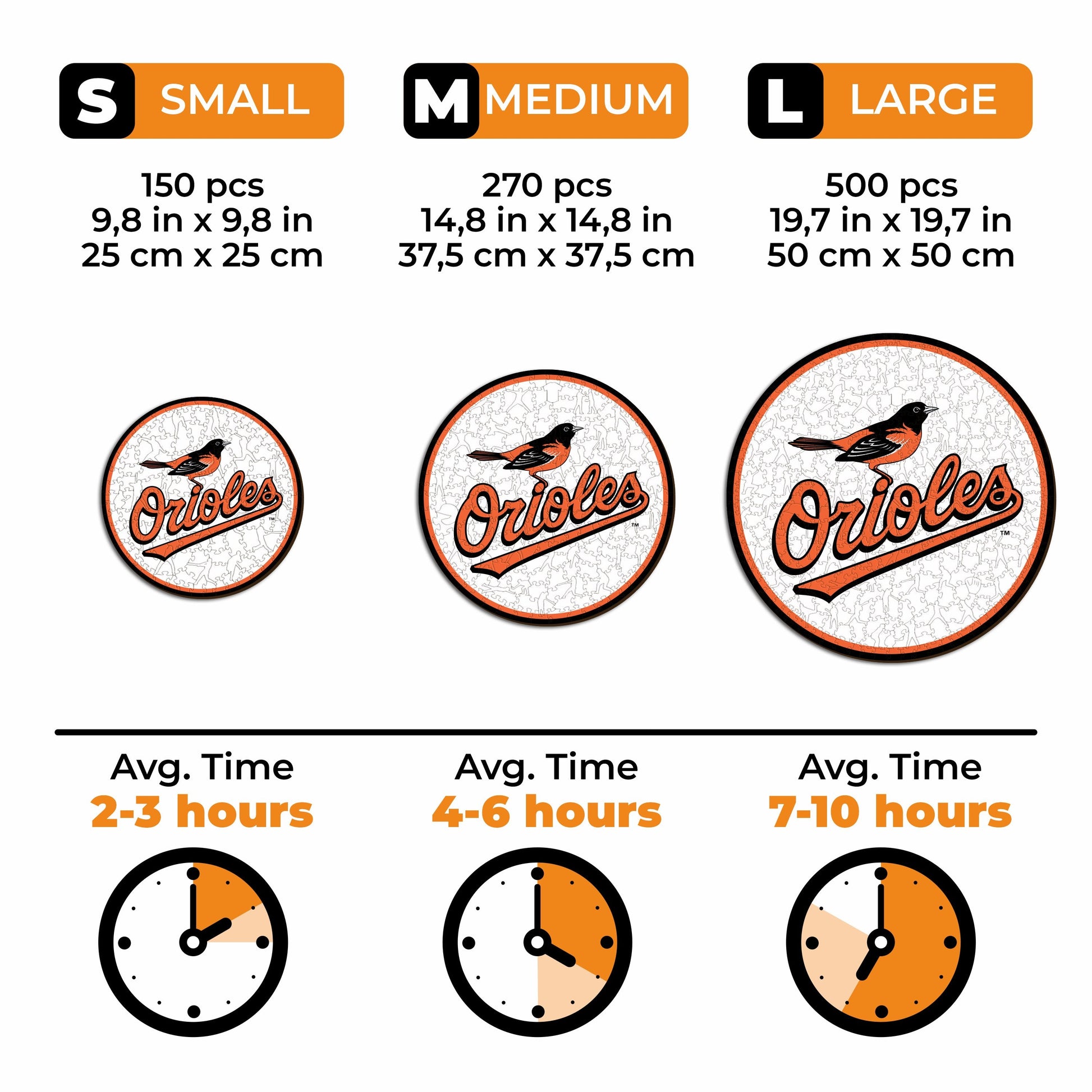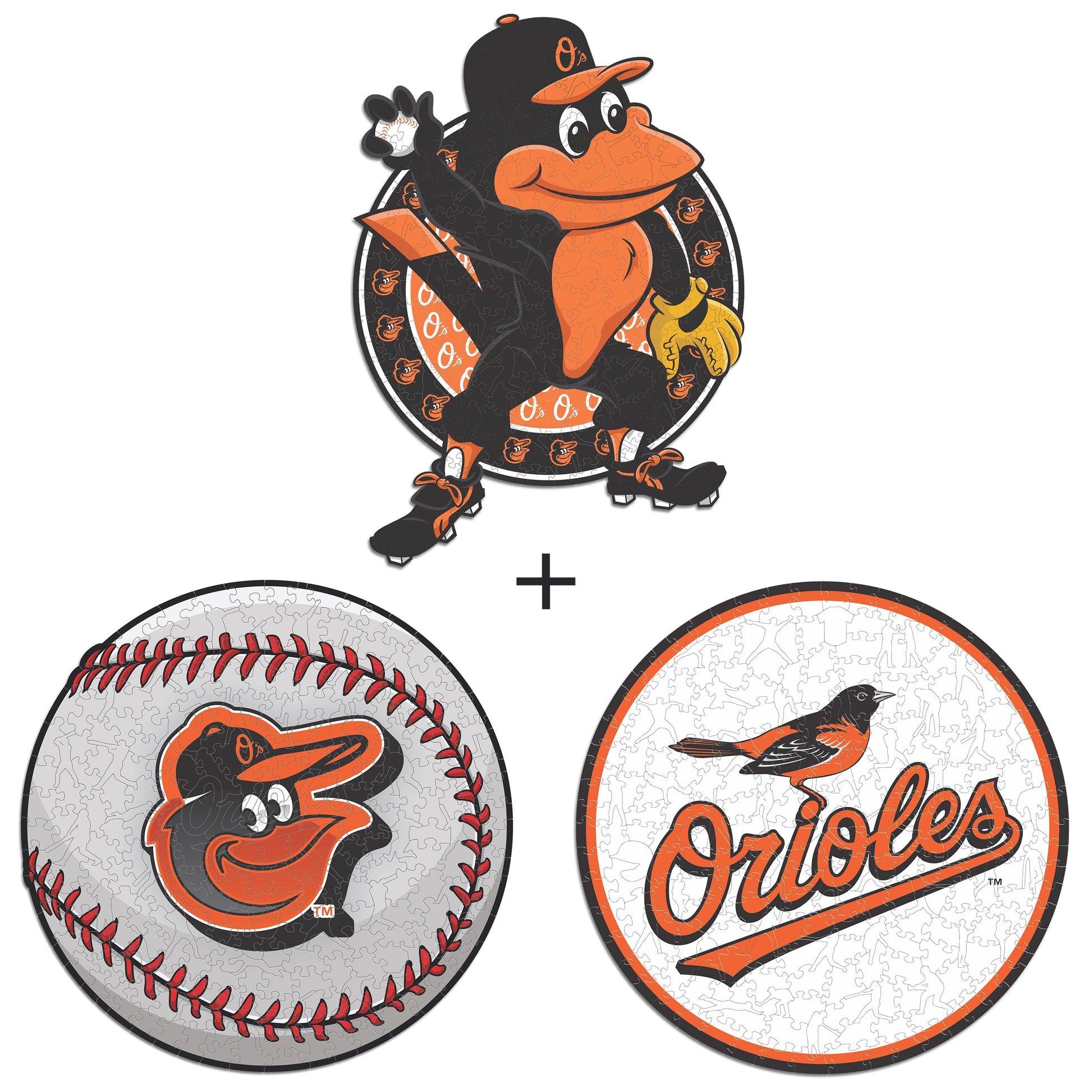 ✓ 3x (Baltimore Orioles™ Logo + Mascot + Baseball) Official Wooden Puzzles