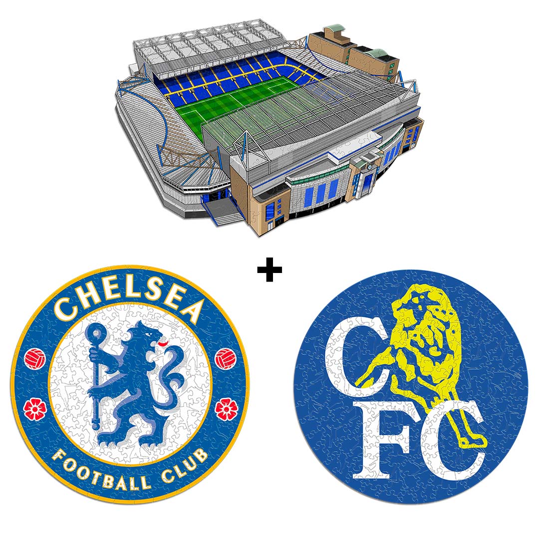 ✓ 3x (Chelsea FC® Logo + Retro Logo + Stamford Bridge) Official Wooden Puzzles