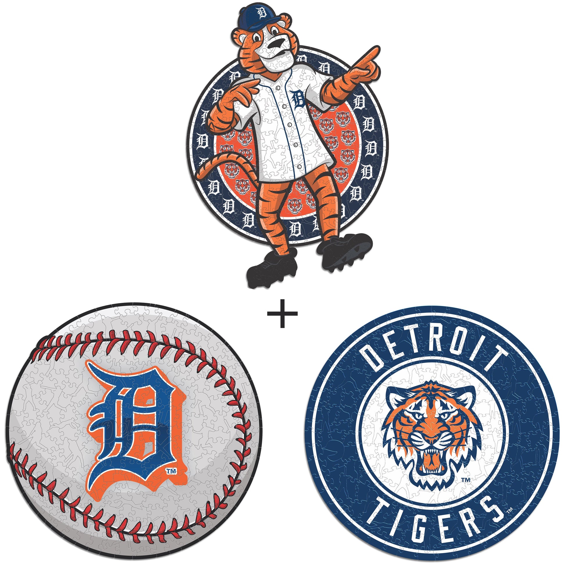 ✓ 3x (Detroit Tigers™ Logo + Mascot + Baseball) Official Wooden Puzzles