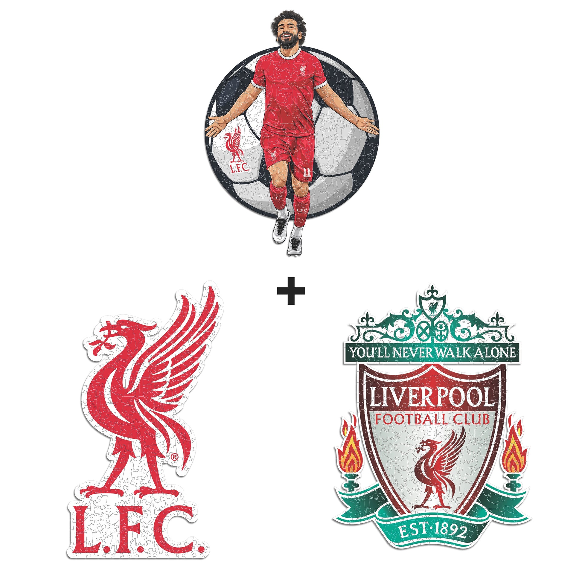 ✓ 3x (Liverpool FC® Logo + Liver Bird Logo + Salah) Official Wooden Puzzles