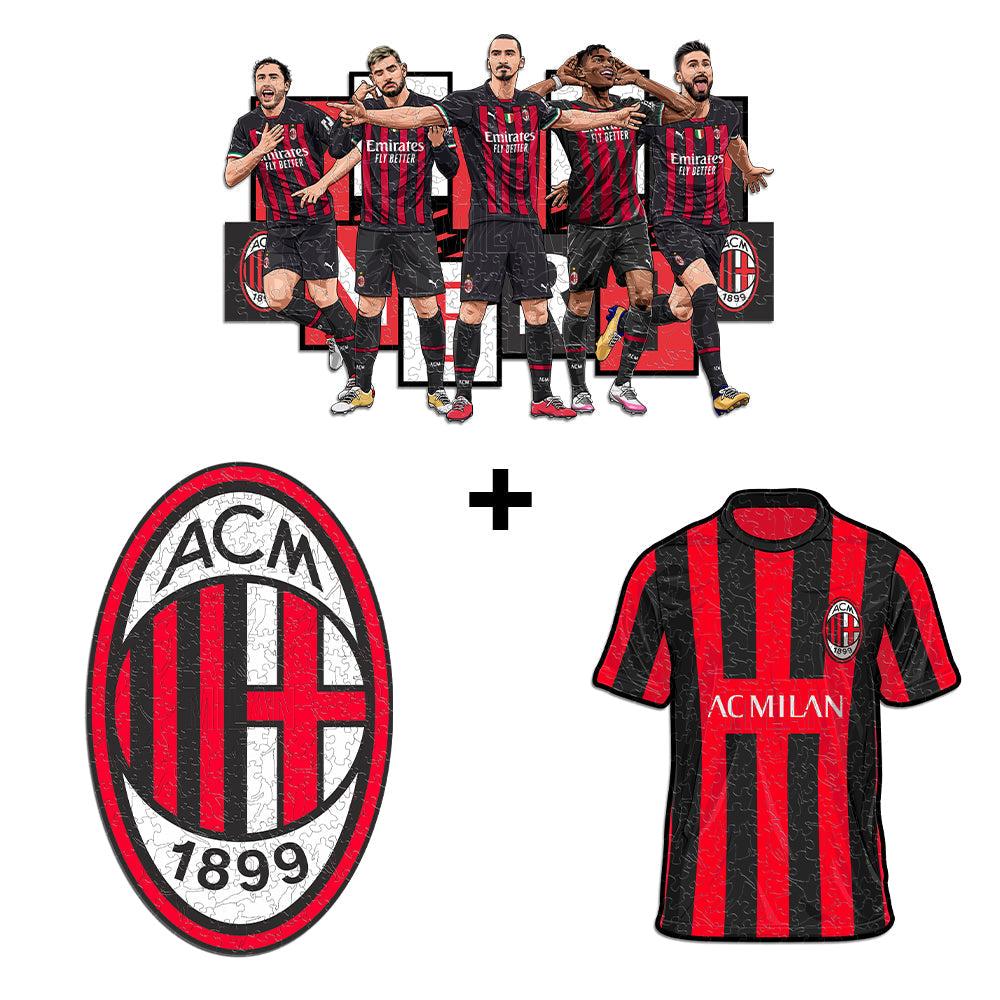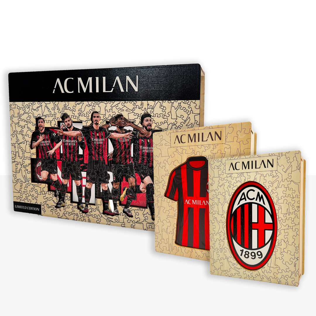 ✓ 3x AC Milan® Logo + Jersey + 5 Players Official Wooden Puzzles
