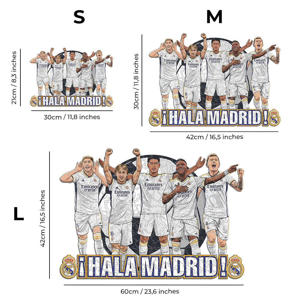 3x (Real Madrid CF® Logo + Jersey + 5 Players) Official Wooden Puzzles