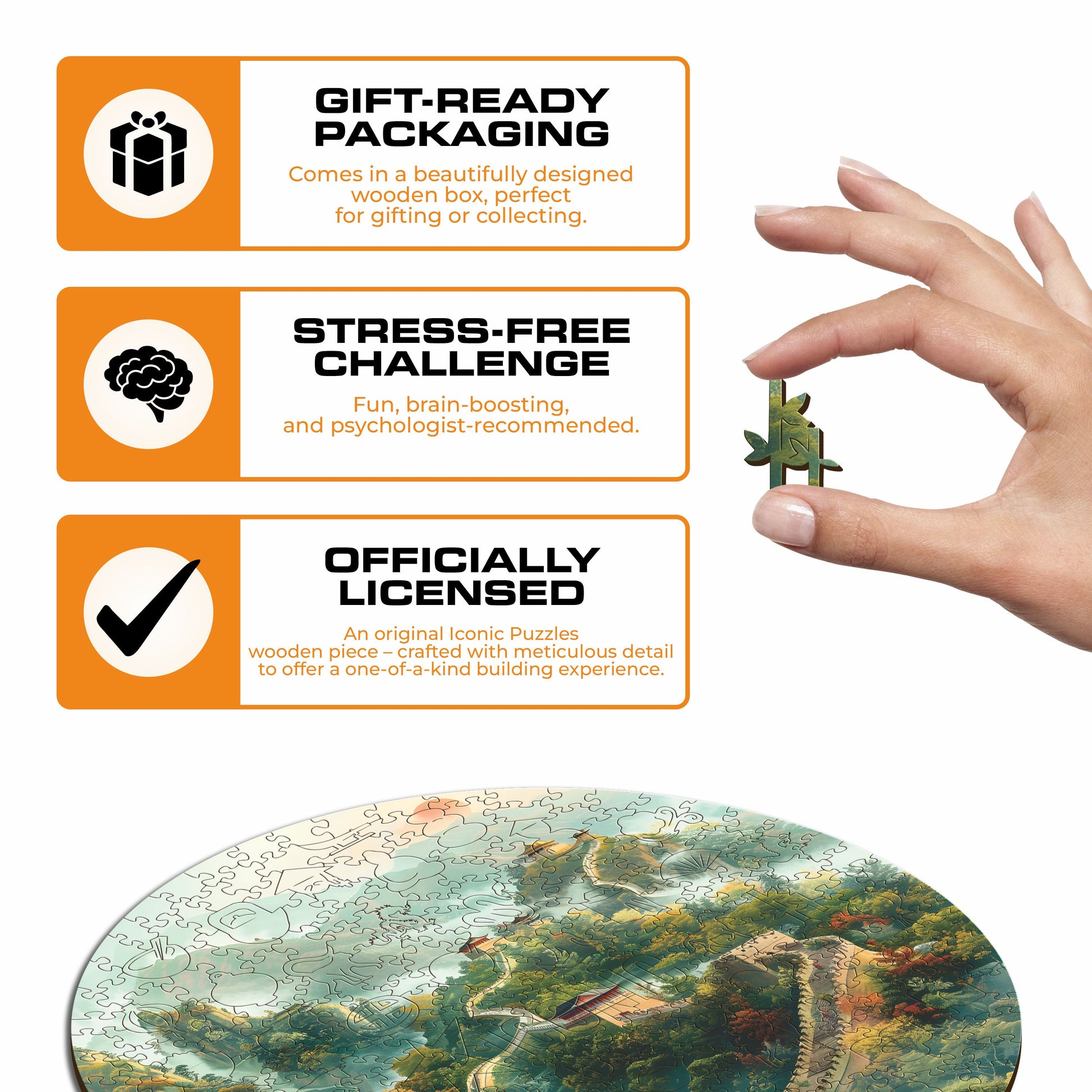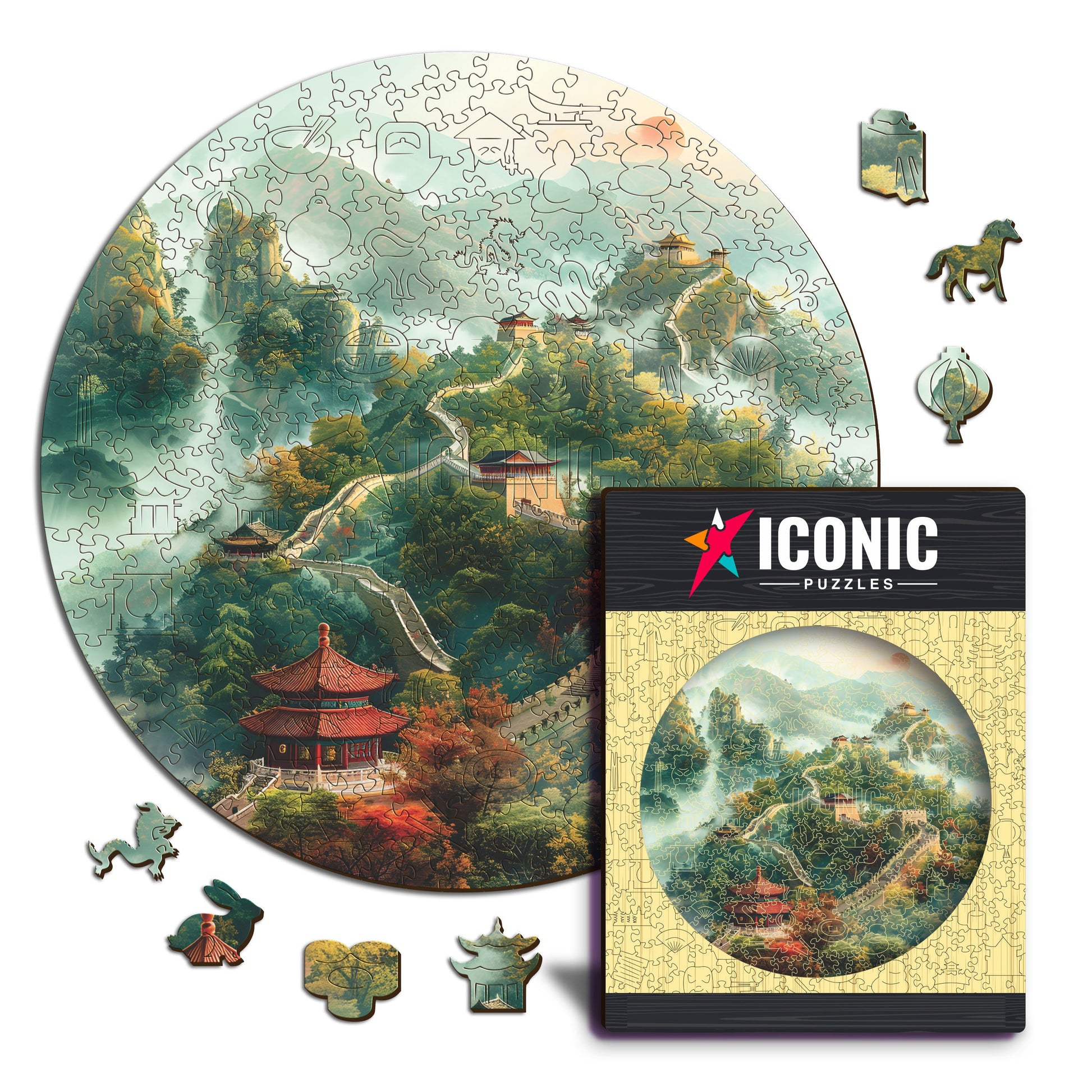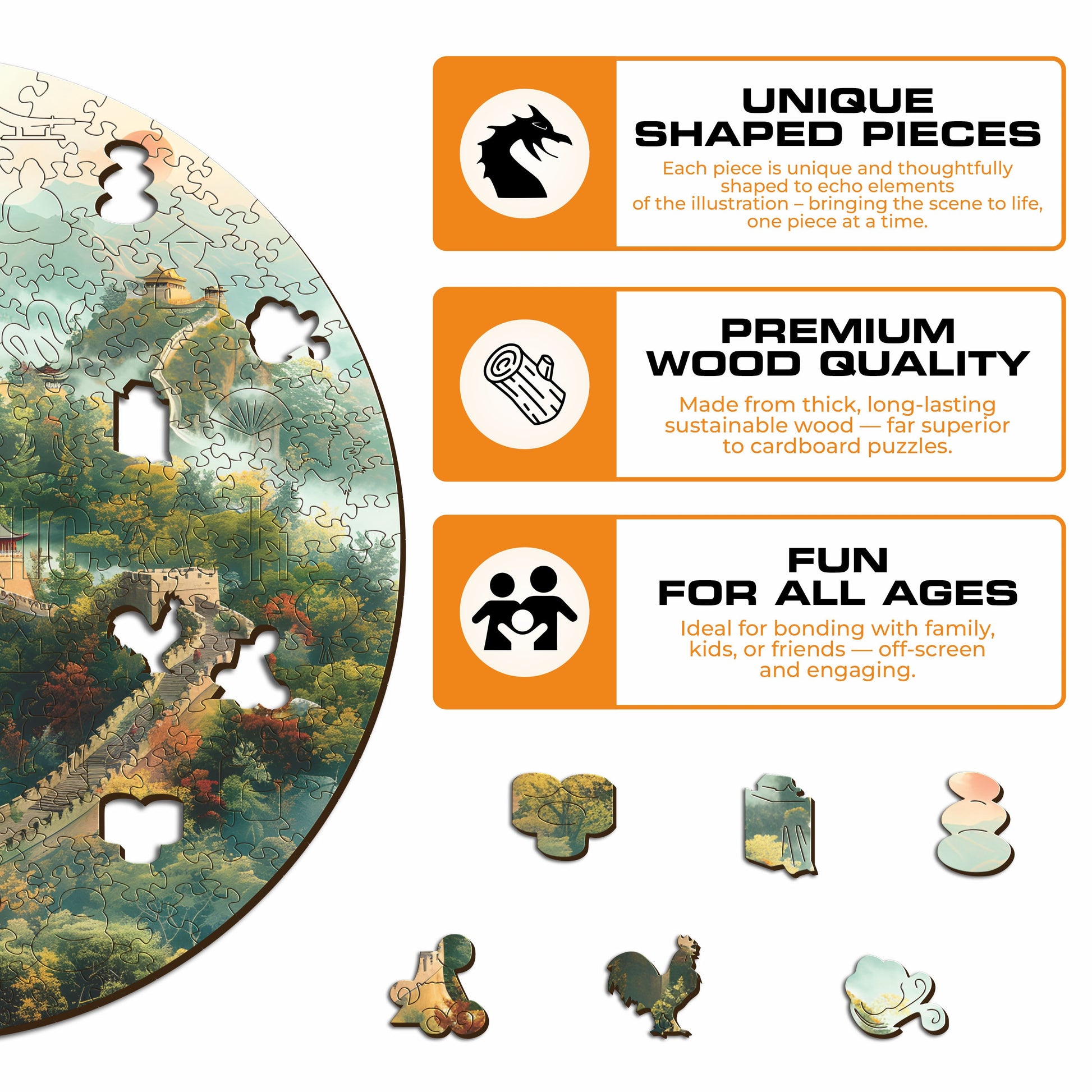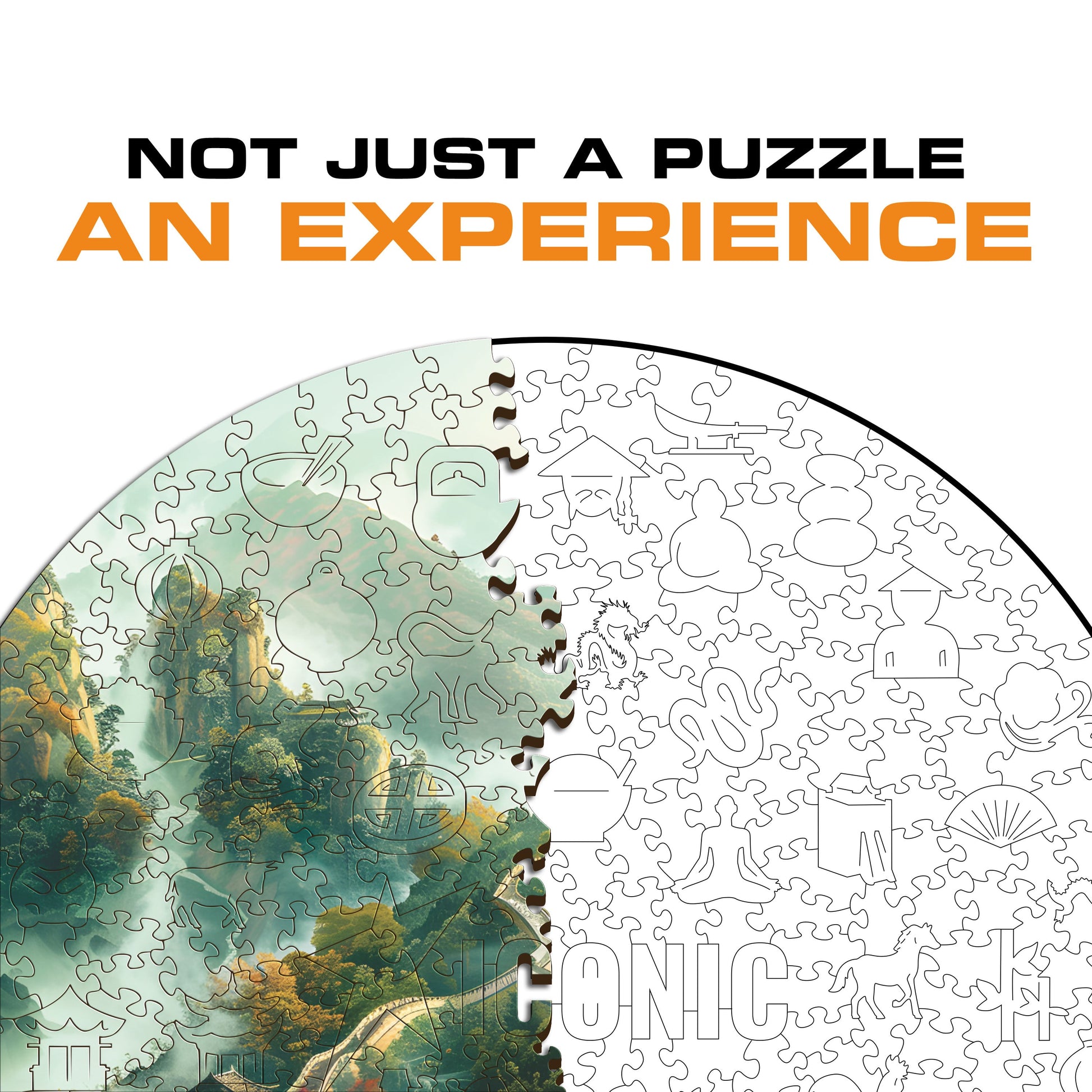 Each puzzle piece has a unique shape that depicts elements related to the China.