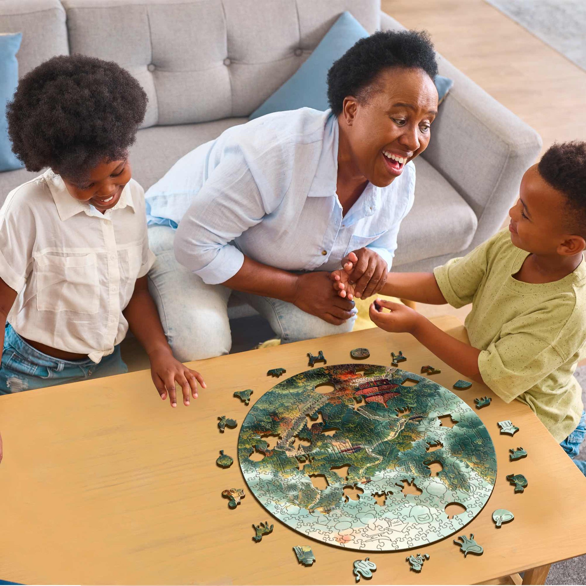 100% sustainable wooden puzzle 1/5in (0.3cm) thick.