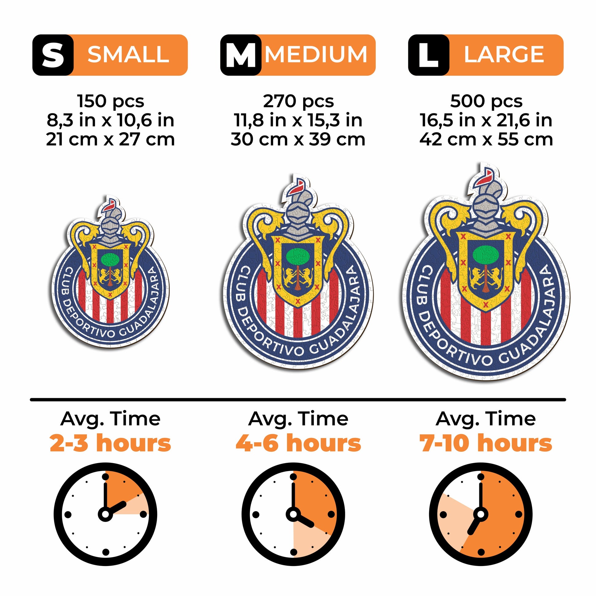 ✓ 1x Chivas Guadalajara® Logo - Official Wooden Box (featuring a printed guide on the front to help you complete the puzzle with ease)