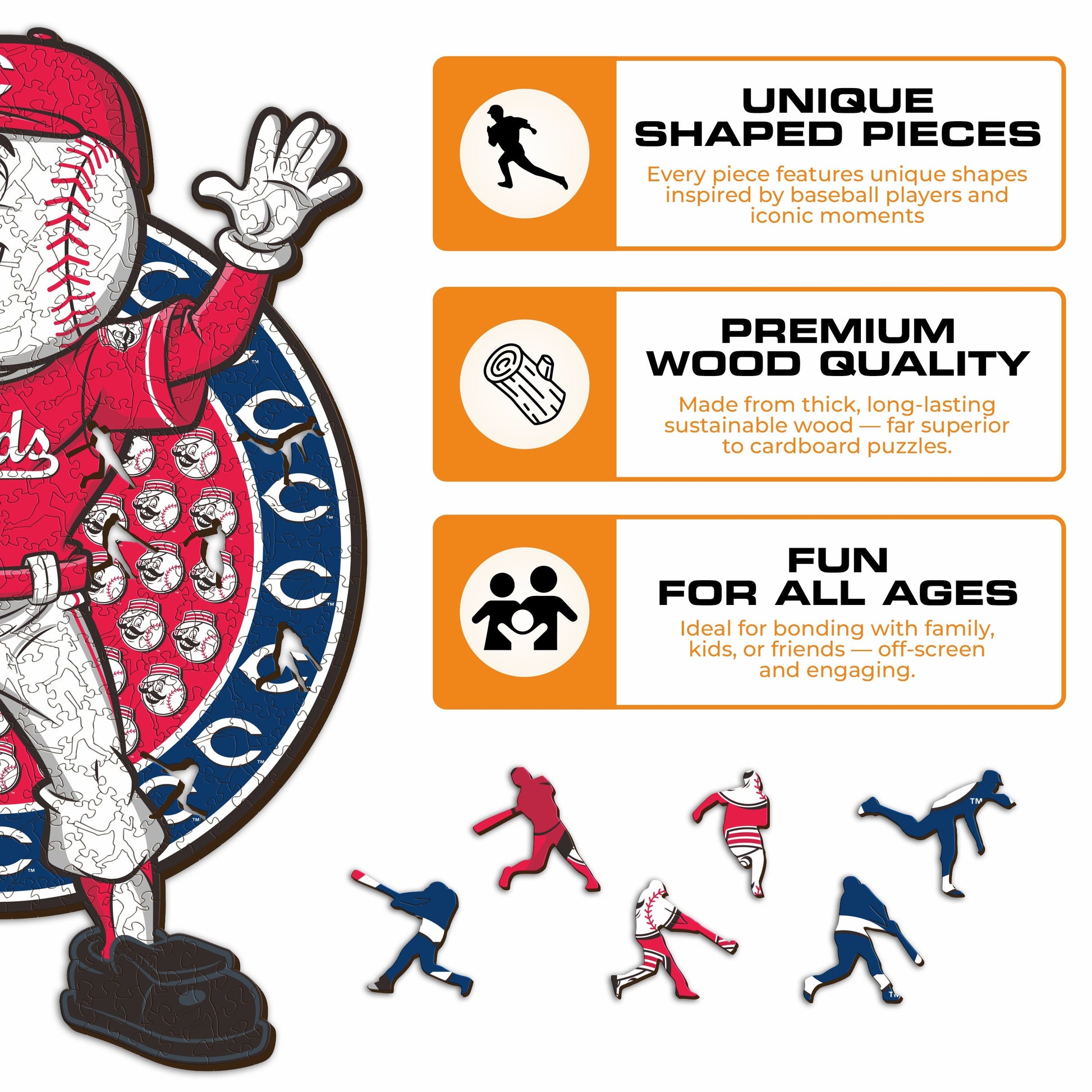 1x Cincinnati Reds™ Mascot - Official Wooden Puzzle