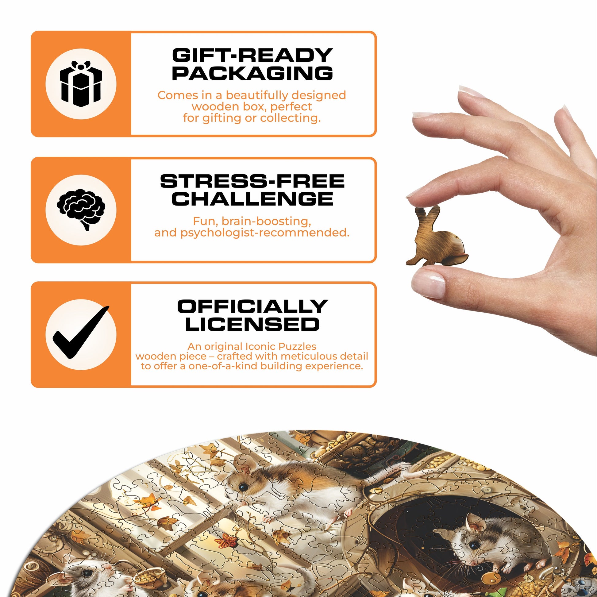 - 100% sustainable wooden puzzle, 1/5in (0.3cm) thick.