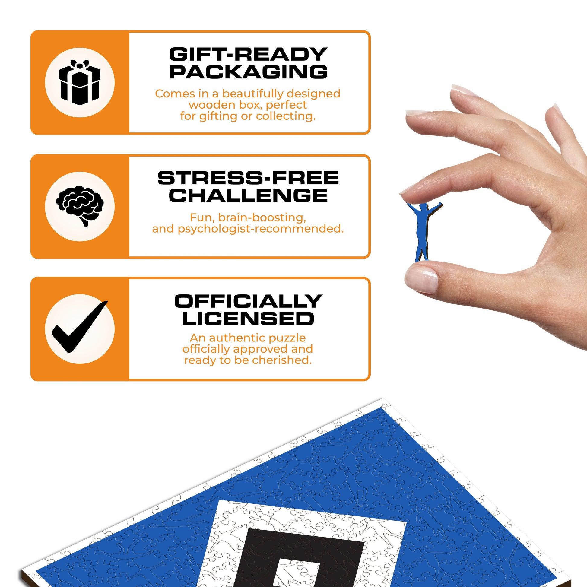 - 100% sustainable wooden puzzle, 0.3cm thick.