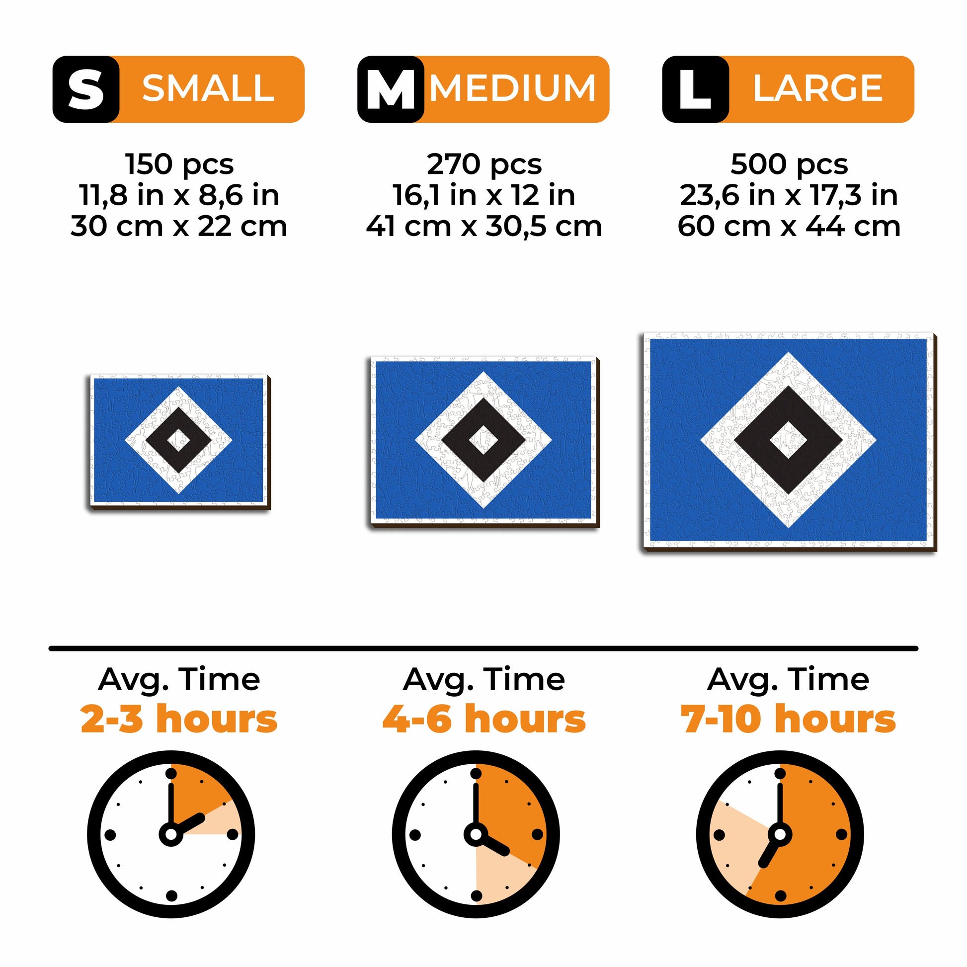 Each puzzle piece has a unique shape that depicts elements related to soccer and iconic player poses.