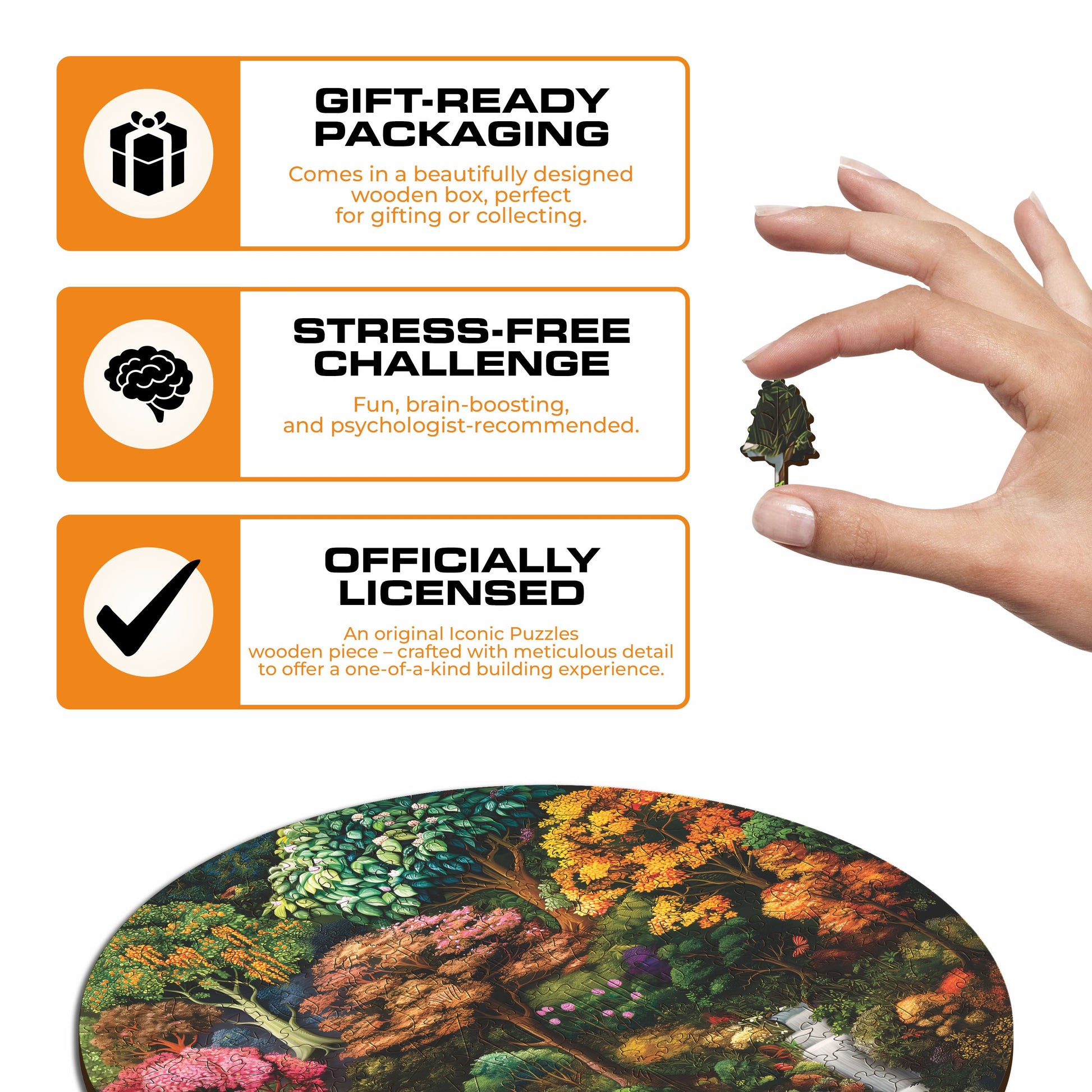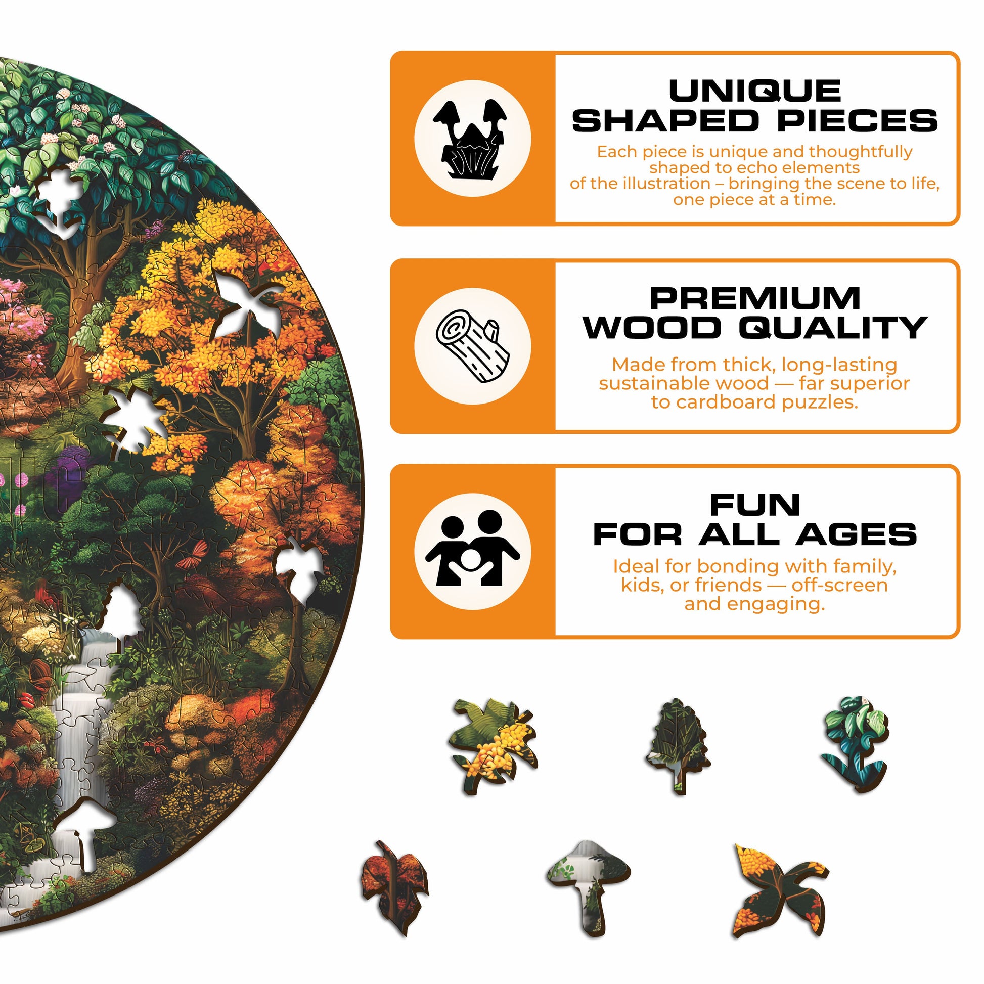 We believe in giving back what nature has given us: our puzzles are made of 100% sustainable wood, and we turn your orders into entire forests