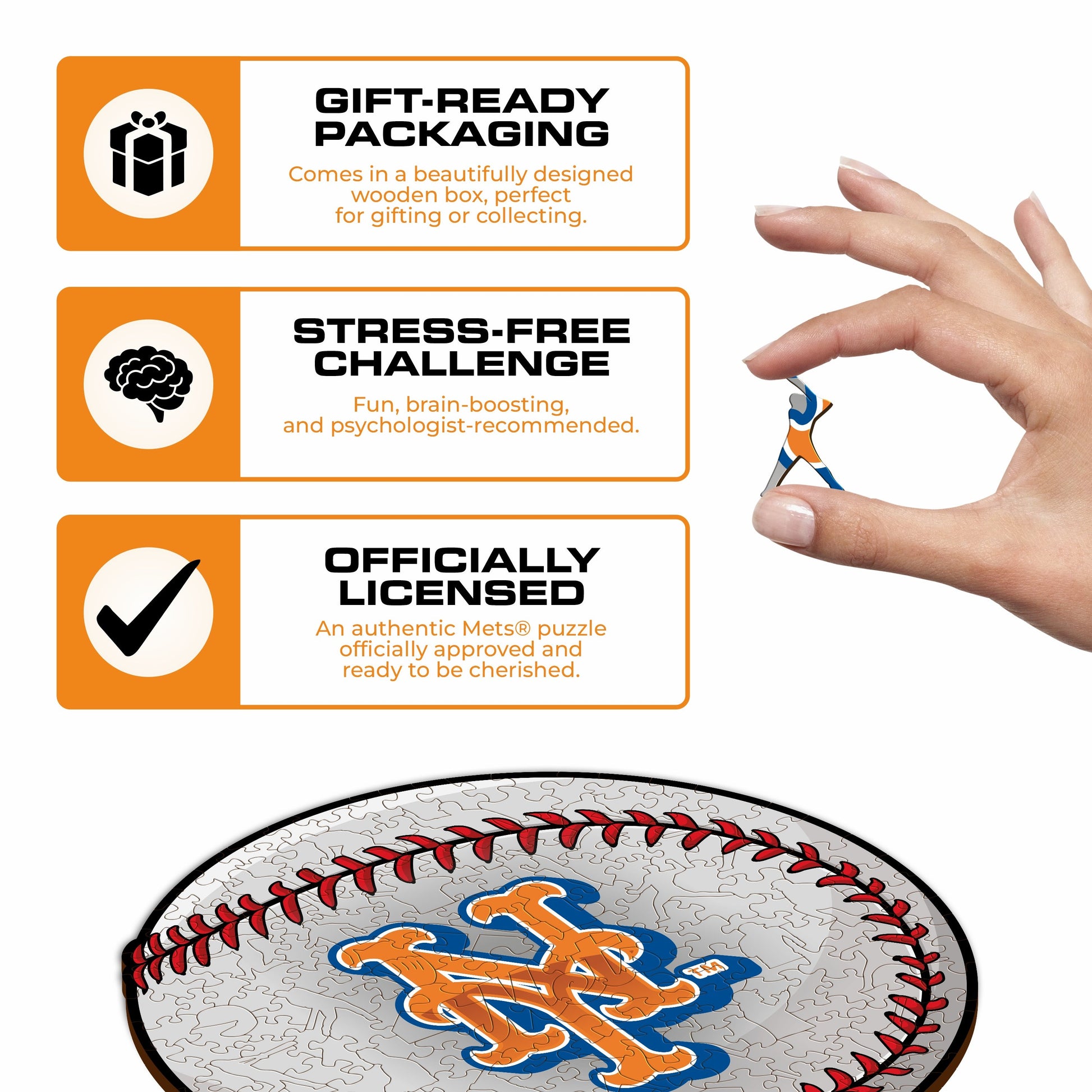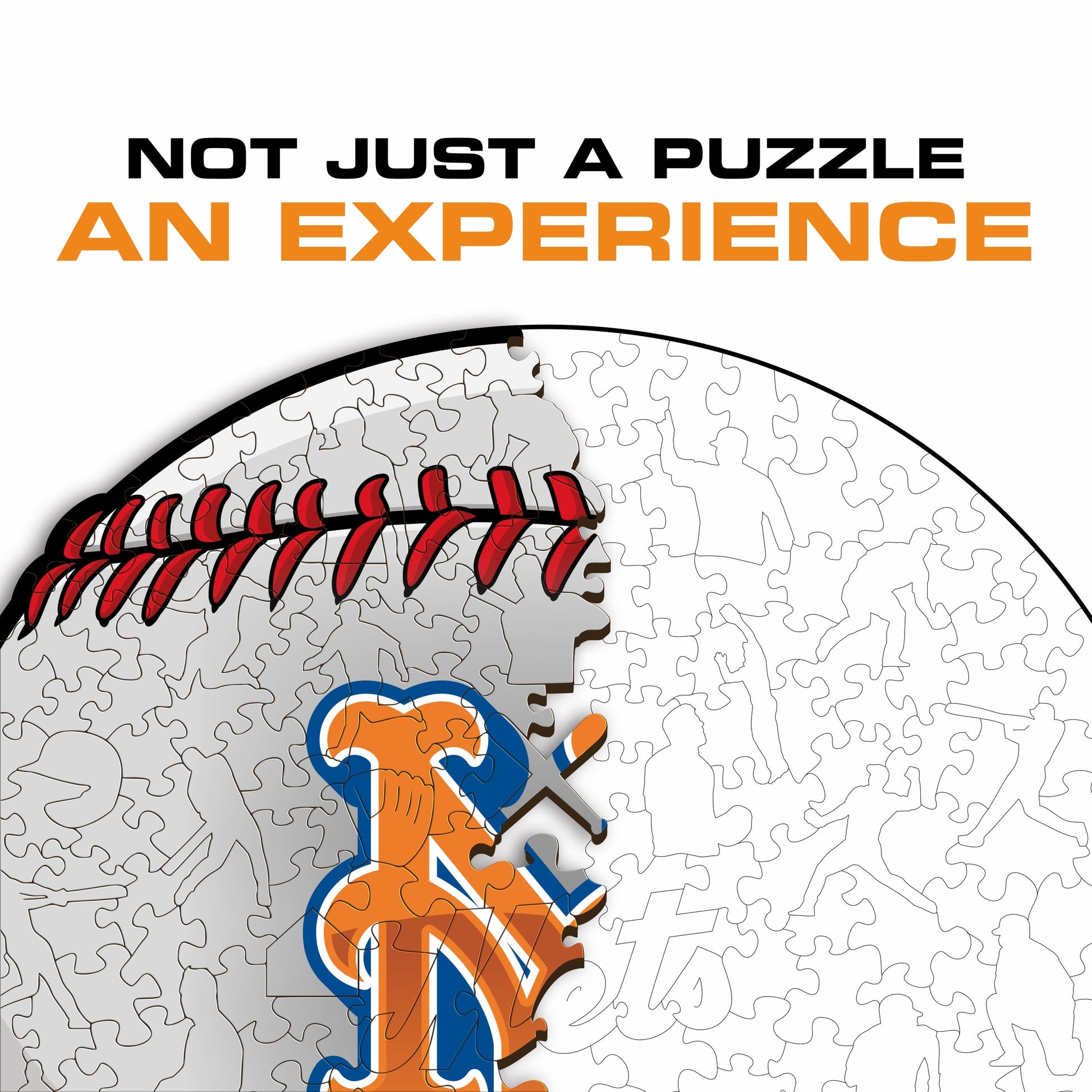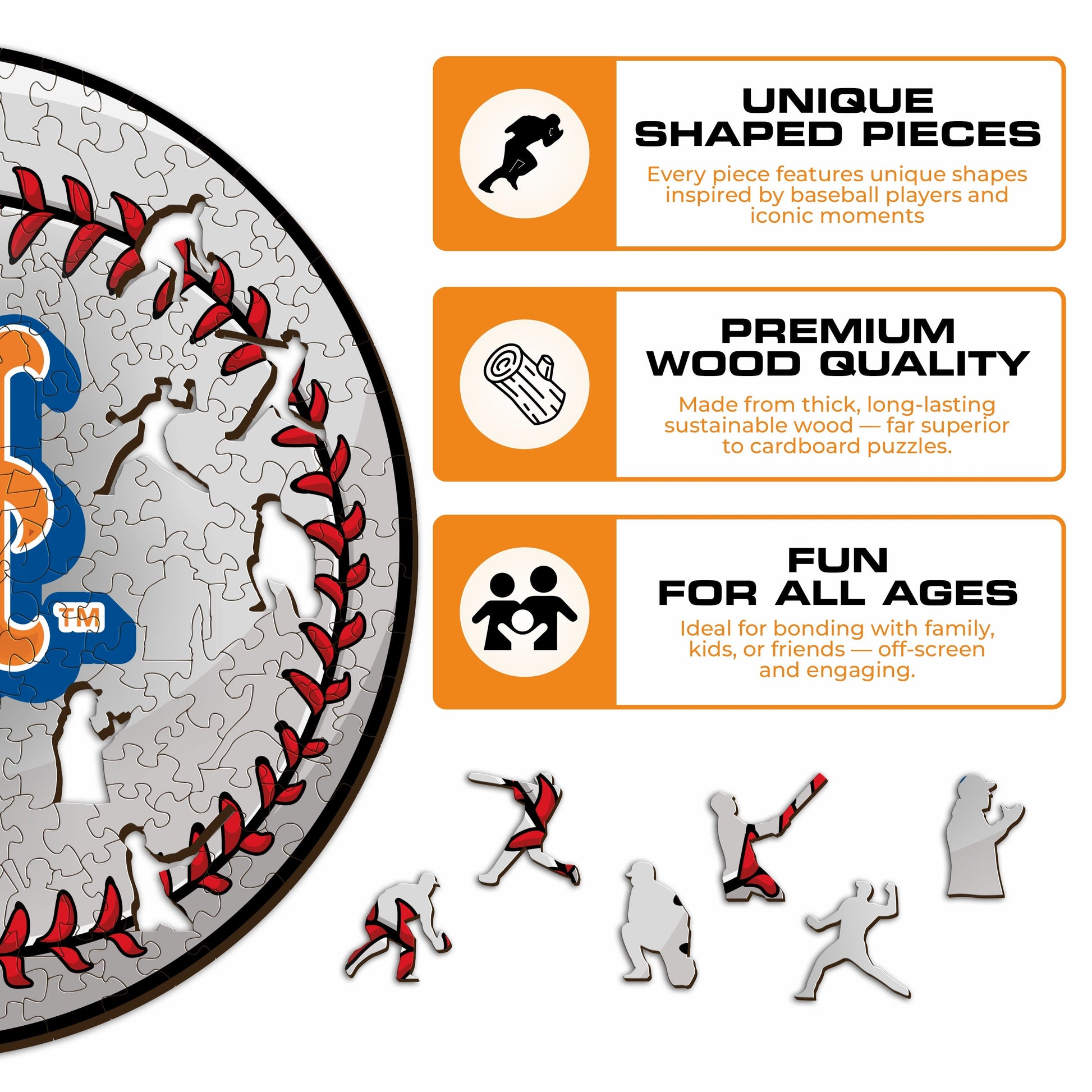Each puzzle piece has a unique shape that depicts elements related to baseball and iconic player poses.