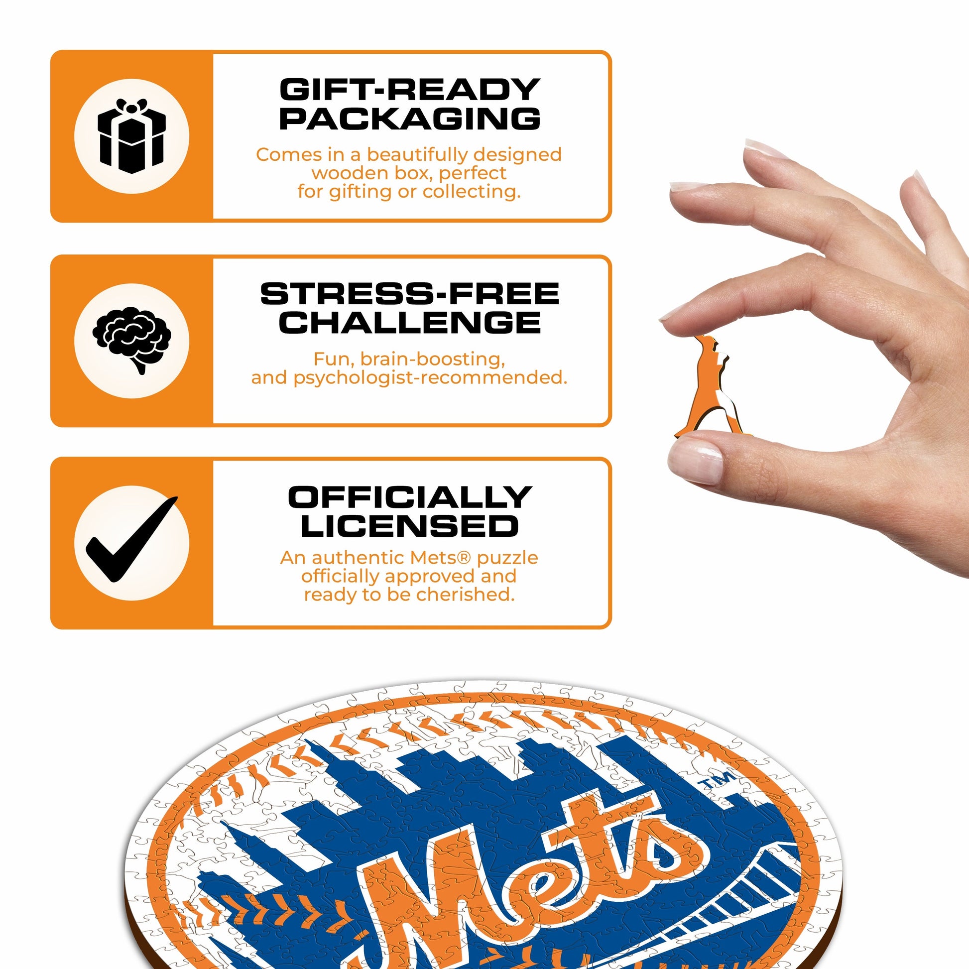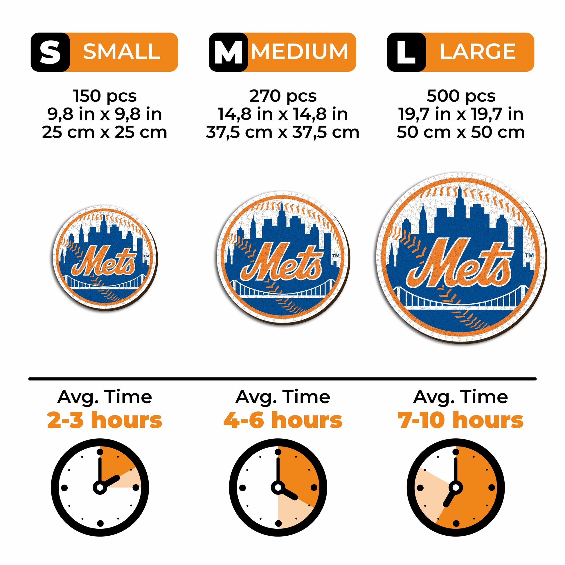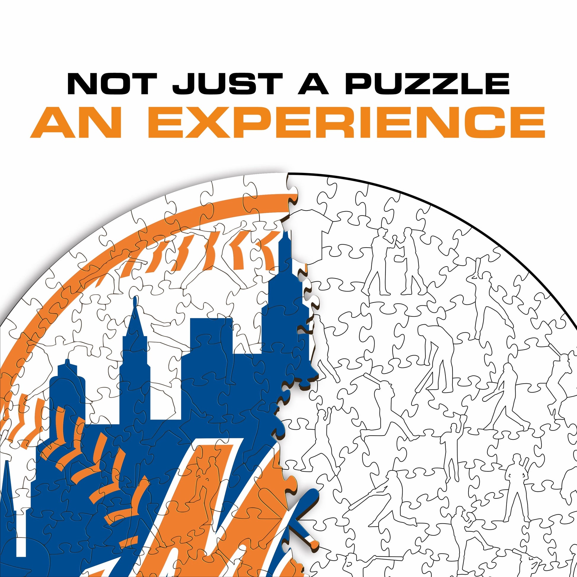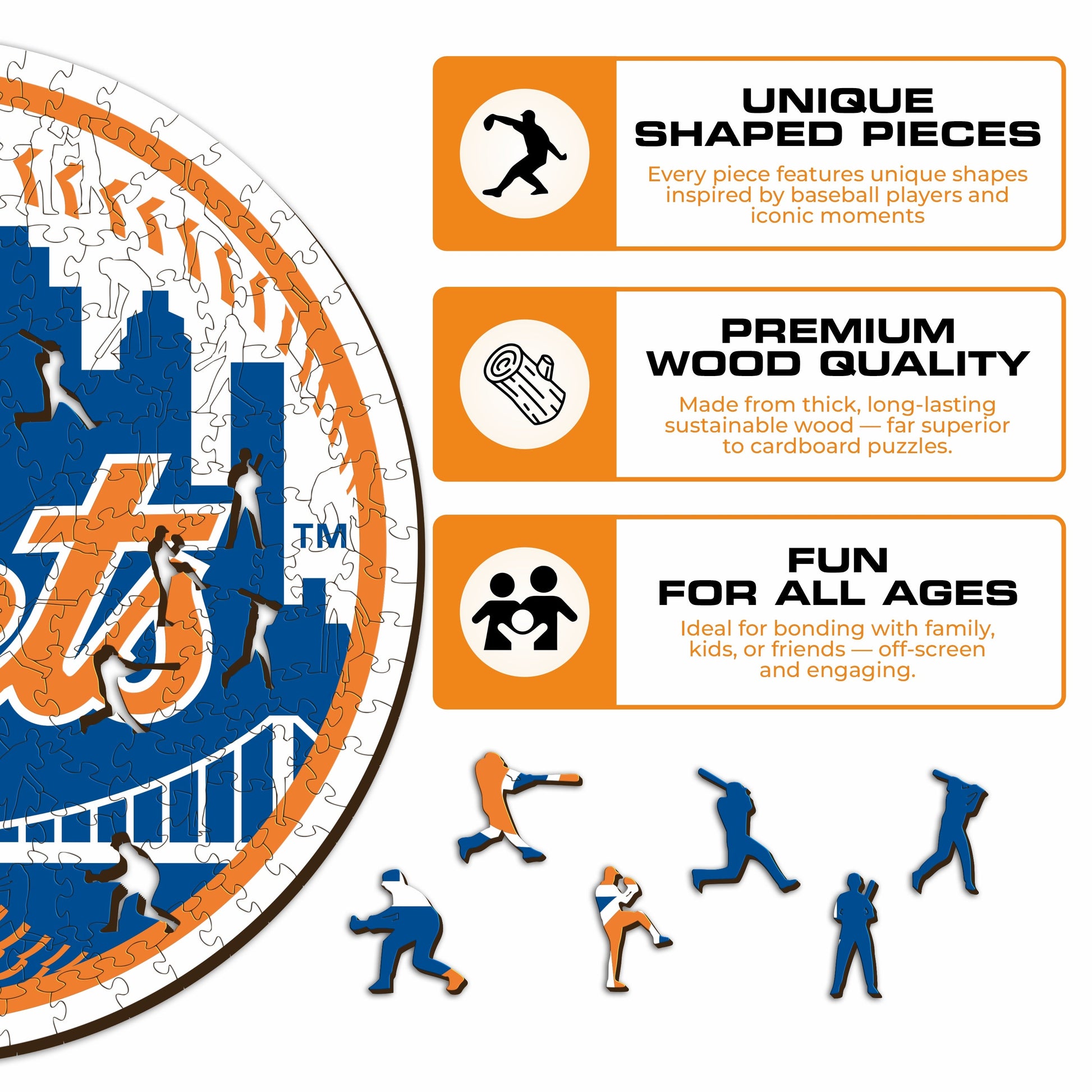 Each puzzle piece has a unique shape that depicts elements related to baseball and iconic player poses.