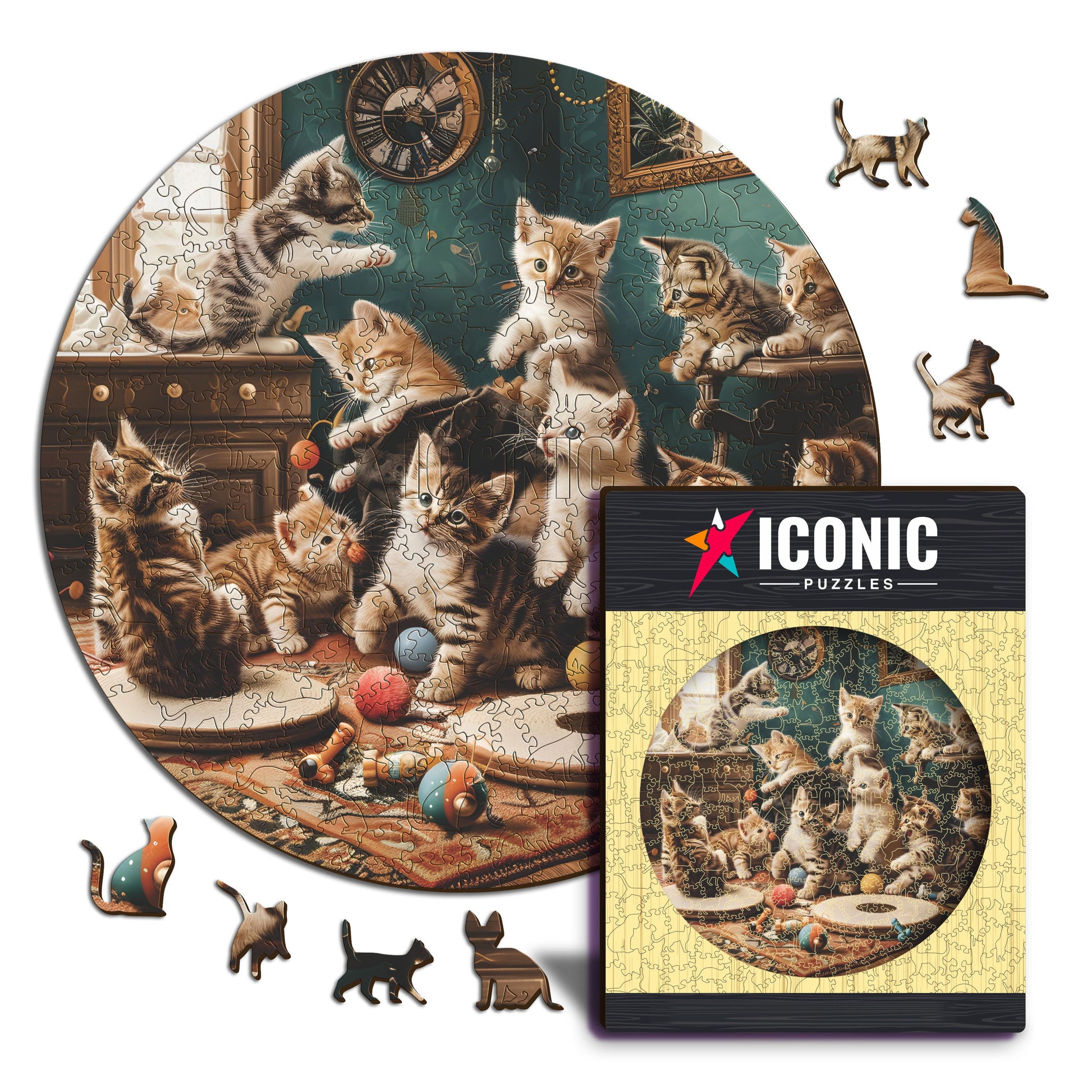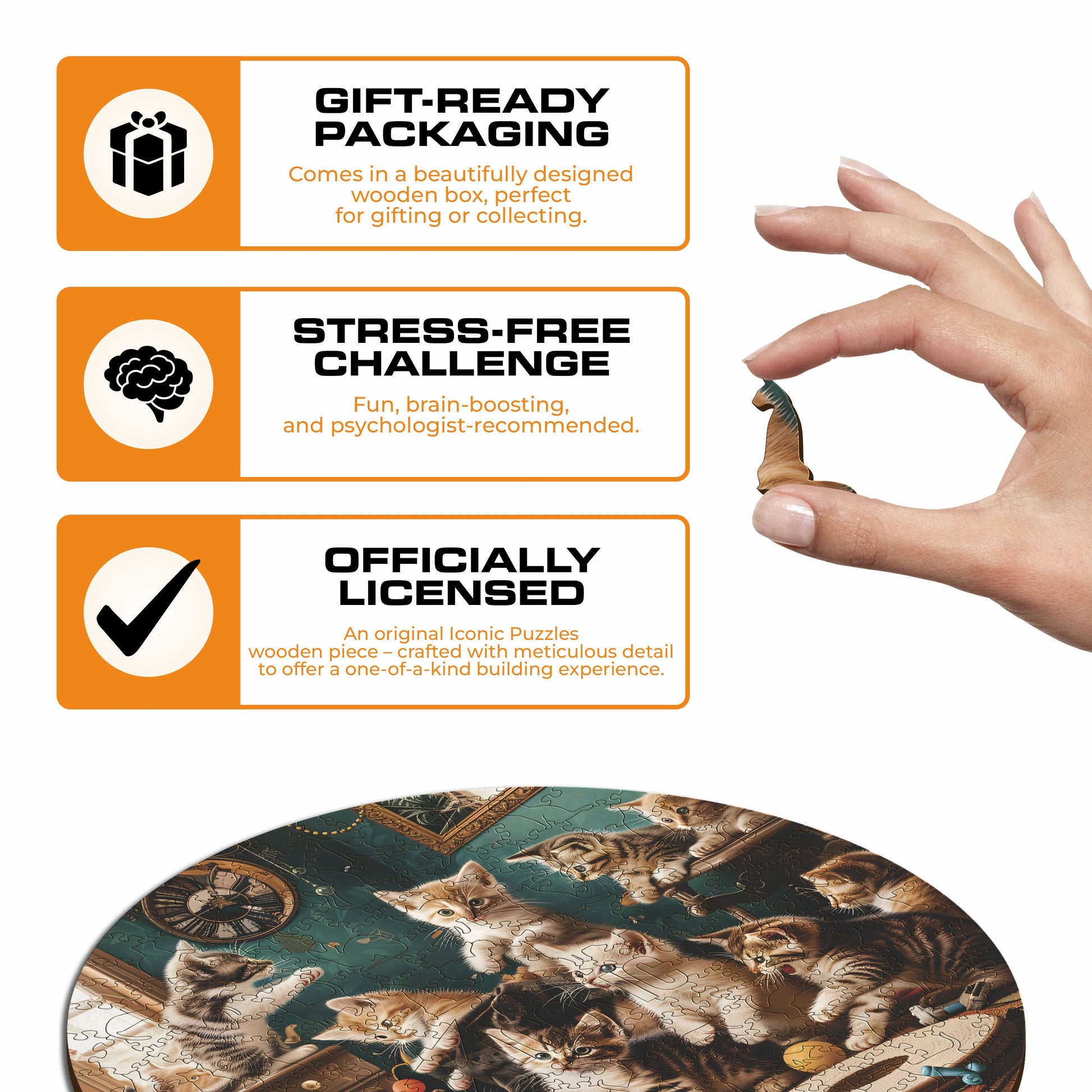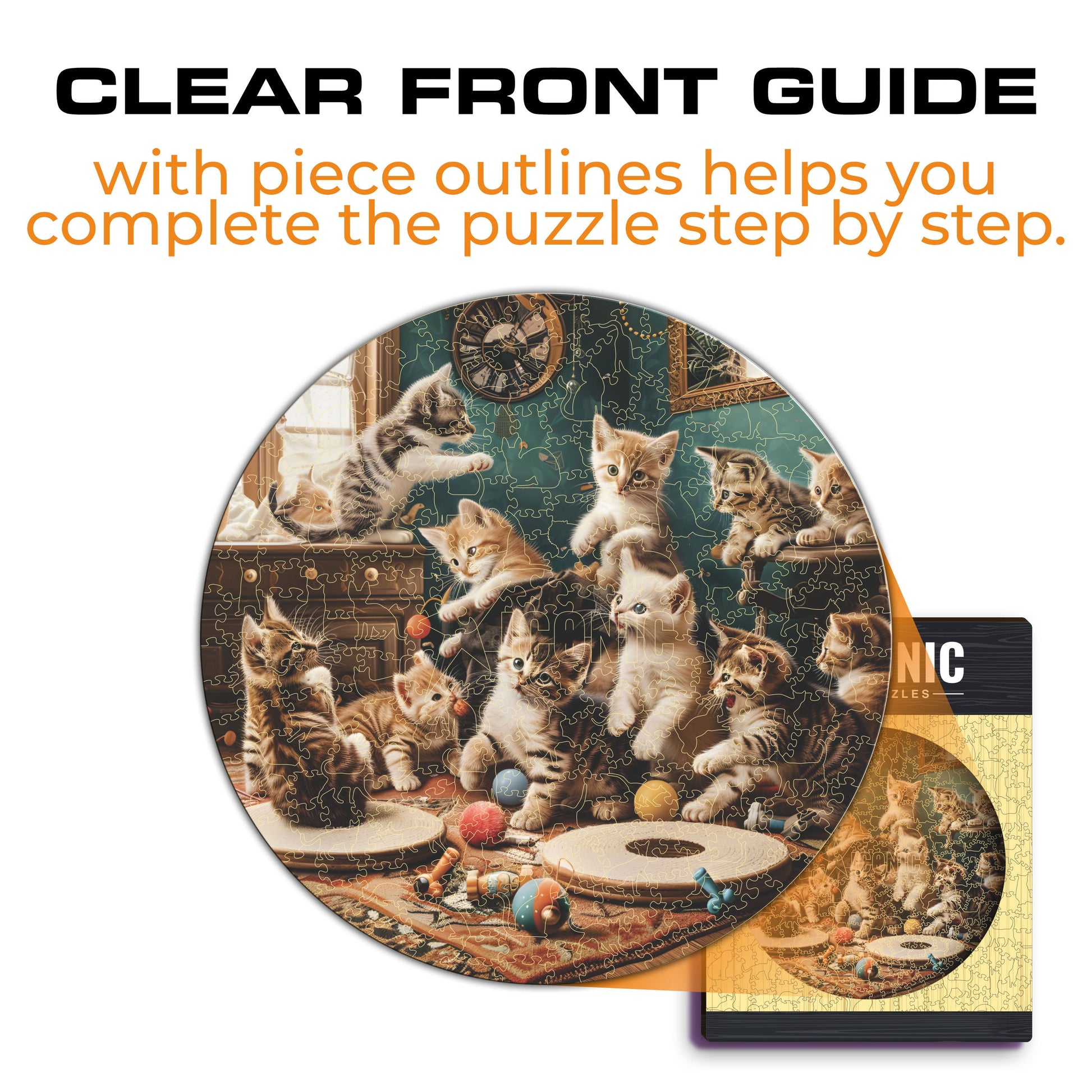 1x Playful Kittens - Official Wooden Box (featuring a printed guide on the front to help you complete the puzzle with ease)