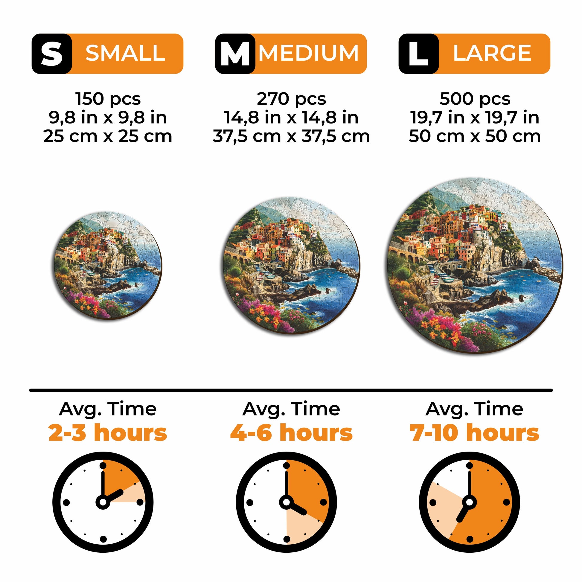 100% sustainable wooden puzzle 1/5in (0.3cm) thick.