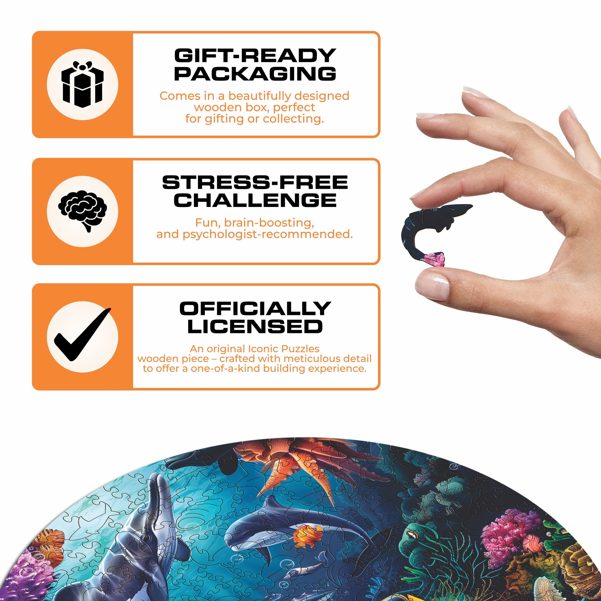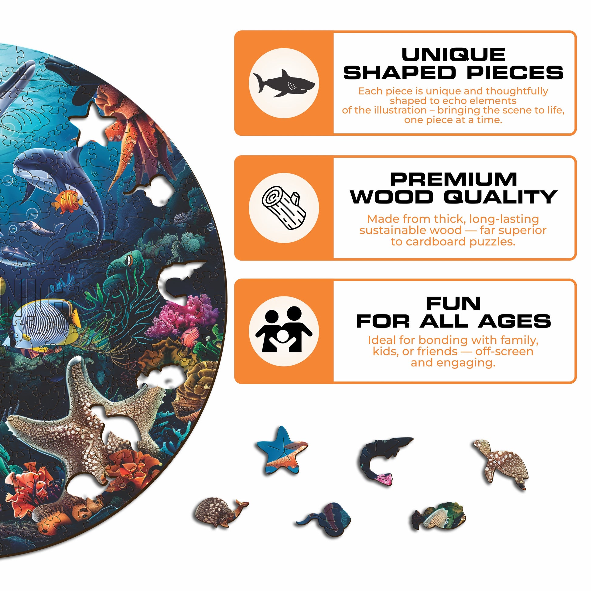 100% sustainable wooden puzzle 1/5in (0.3cm) thick.