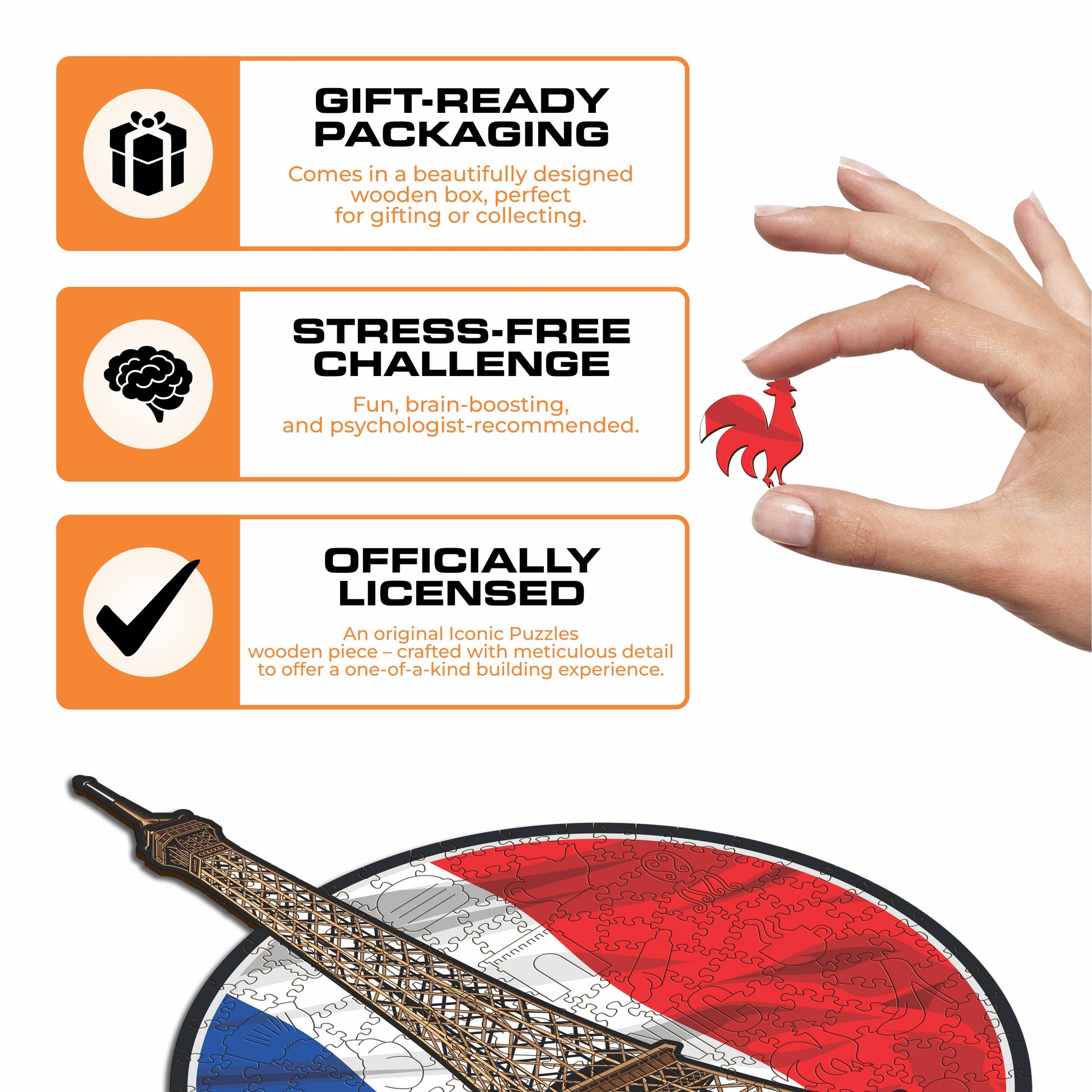 ✓ 1x Tour Eiffel - Official Wooden Box (featuring a printed guide on the front to help you complete the puzzle with ease)