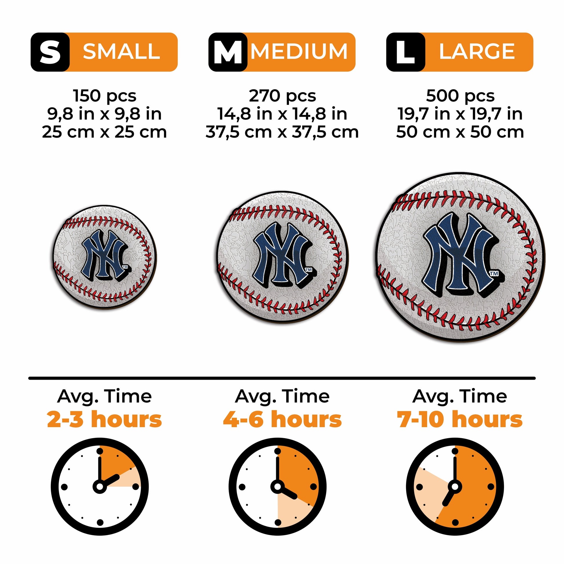 Each puzzle piece has a unique shape that depicts elements related to baseball and iconic player poses.